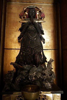 鹿王院 (ろくおう-いん)は、正式には大福田宝幢(ほうどう)禅寺という。山号を覚雄山(かくゆうざん)という。 臨済宗の単立寺院、本尊は釈迦如来。 ◆歴史年表 創建、変遷の詳細は不明。 南北朝時代、1379年/1380年、室町幕府3代将軍・足利義満が、春屋妙葩(しゅんおく-みょうは)を開山として建立した。寺名は「宝幢禅寺(宝幢寺)」といい、宝幢菩薩が安置された。義満は臨済禅に帰依し、「宝幢菩薩を祀る一伽藍を建立せば寿命が増長す」との夢告に従い建立したという。(『宝幢開山知覚普明国師行業実録』『山州名跡志』)。開山堂が建てられる。開山・春屋の塔所とし、同時に鹿王院が建立されたという。野鹿が群れを成して現れたため、鹿王院と称された。(『鹿王院記』)。以後、春屋一派の拠点寺院になる。 1380年、正月、義満によって宝幢寺(鹿王院)は凖十刹に列せられた。 また、1384年、義満は「宝幢寺」に改めたという。当初は、「興聖(こうしょう)禅寺」という寺名だったともいう。(『鹿王院記』) 1386年、旧7月/1385年、五山十刹の京都十刹に数えられる。後に、第五位の官寺になる。天龍寺と宝幢寺を繋ぐ大道は「天下竜門の道」と呼ばれ、多くの塔頭寺院が建てられていた。 1387年、春屋の開山塔所として鹿王院が建立された。開山堂に野鹿が群れをなして現れ、鹿王院の院号になったともいう。 室町時代、1420年、義満十三回忌が天皇の行う法事(済会)に倣い、宝幢寺で行われた。義持と扈従(こしょう)の公卿らは、20数台の牛車を連ね参詣したという。 室町時代前期、寺は最も栄えた。4代将軍・足利義持(1386-1428)、6代将軍・義教(1394-1441)、8代将軍・義政(1436-1490)ら歴代の御成りがあった。臨済宗大徳寺派の禅僧・一休宗純(1394-1481)が少年の頃、当院で維摩経の提唱を聴いたという。 1468年、応仁・文明の乱(1467-1477)により、天龍寺とともに宝幢寺は全焼した。 その後、本寺・宝幢寺は衰微し、塔頭の鹿王院だけが残った。また、宝幢寺は鹿王院に合併されたともいう。宝幢寺の全国30カ所の荘園は、守護・地頭の押領により次第に失われる。以後、宝幢寺は再建されなかった。 安土・桃山時代、1596年、伏見大地震により鹿王院は倒壊している。 安土・桃山時代、天龍寺の山外塔頭になる。 江戸時代、寛文年間(1661-1673)、酒井忠知の援助により、子・虎岑(こしん)が再興し鹿王院とする。 1667年、虎岑が、出羽の本家鶴岡藩の外護により堂舎を修復した。 1676年、昭堂が再建された。天龍寺の塔頭になる。春屋門派末寺63カ寺とともに宝幢派を形成し、近代まで維持した。 1763年、14世・南叟昌瑠により、舎利殿が客殿東北より現在地に移された。 1788年、御朱印配当96石2斗8升7合を得る。「實幢寺(宝幢寺?)」の名がある。(「天竜寺末寺帳」) 近代、1936年、映画俳優・大河内傳次郎が寄進し、住持の隠寮になった茶席「芥室(かいしつ)」がある。 現代、1968年、単立になる。 ◆足利 義満 南北朝時代-室町時代前期の室町幕府第3代将軍・足利 義満(あしかが-よしみつ、 1358-1408)。男性。父・2代将軍・義詮、母・紀良子(石清水八幡宮検校善法寺通信の娘)。第84代・順徳天皇の玄孫に当たる。1366年、後光厳院より義満の名を賜り改名した。従五位下に叙する。1367 年、10歳で将軍職を継ぎ、朝廷内で権力を振い、天皇祭祀の形骸化を謀る。地方の有力守護大名を弾圧し権力を掌握、公武権力共に手にする。1377年よ り、「花の御所」の築造を始めた。夫人・日野素子が女児を産む。その後、亡くす。1378年、室町の「花の御所」に幕府を移す。権大納言に任ず。従二位。 1380年、従五位。1381年、内大臣。1382年、左大臣、相国寺を建てた。1383年、源氏長者になる。奨学院、淳和院別当。准三后の宣下を受けた。1384年、右大臣を辞した。1390年、土岐康行の乱により土岐を滅ぼす。1391年、明徳の乱で幕府への反乱を撃破する。1392年、勢力の衰えた南朝を吸収し南北朝を合一、全国統一した。1394年、義持に将軍職を譲り隠居する。実際には太政大臣として政治上の実権を握り続ける。義教誕生。1395年、出家して東大寺で受戒、道義と号した。1398年、北山第を立柱、1399年、大内義弘の謀反を鎮圧した。1401年、北山文化が盛んになり、明の倭寇取締。1402年、明の使僧を北山第に引見する。1403年、明帝より朝貢貿易上の「日本国王源道義」の詔書を受け取る。 1404年より、明との勘合貿易を再開した。北山に大塔建立を計画する。1405年、日野業子が亡くなる。1407年、日野康子を北朝第6代・第100 代・後小松天皇の准母となす。1408年、北山第に後小松天皇を迎え、子・義嗣を親王とした。自らの上皇位を目前に急死した。病死とも、暗殺ともされる。 臨川院の位牌には「鹿苑院太上(だいじょう)法皇」、相国寺過去帳には「鹿苑院太上天皇」と記されている。義満の、君主の地位を奪取する皇位簒奪(こういさんだつ)とする見方もある。没後、朝廷は「太上天皇」の称号を贈る。だが、幕臣会議で辞退になり一日太上天皇に終わる。等持院で火葬され、