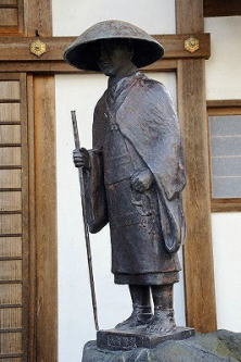 鳴滝の了徳寺(りょうとくじ)は、親鸞の旧跡地になっている。京都の初冬の風物詩、季語でもある大根焚き(だいこだき/だいこんだき)で知られ「大根焚寺(だいこんだきでら)」とも呼ばれている。山号を法輪山(ほうりんざん)という。 真言宗大谷派、本尊は阿弥陀如来。 疾病退散、中風除けの信仰を集める。 ◆歴史年表 鎌倉時代、1252年、親鸞は当地で他力念仏を弘通(ぐずう/ぐづう、仏教を広める)したという。(寺伝) 室町時代、1524年/大永年間(1521-1528)、正西(しょうせい)法師が、親鸞ゆかりのこの地に建立した。(寺伝) ◆親鸞 平安時代後期-鎌倉時代中期の浄土真宗の僧・親鸞(しんらん、1173-1263)。法名は綽空(しゃくくう)、善信、範宴、号は愚禿(ぐとく)、諡号は見真大師。京都の日野(伏見区)に長男として生まれた。父は藤原北家の流れをくむ日野有範。母は源氏の出身。幼くして両親を失う。1181年、叔父・日野範綱に連れられ、1181年、9歳で青蓮院・慈円のもとで出家得度し範宴(はんねん)と称した。以後、比叡山横川首楞厳院の堂僧として20年間修行を続けた。東塔無動寺谷の大乗院で修業する。1201年、29歳の時、比叡山を下り、六角堂に参籠、師・源空(法然)の導きにより、浄土教に帰依した。1204年、法然が定めた「七箇条制誡」弟子のひとりとして連署する。1205年、法然は『選択本願念仏集』の書写、法然肖像を描くことを許す。1207年、承元(じょうげん)の法難により、専修(せんじゅ)念仏停止(ちょうじ)にともない、35歳で越後に流罪になり、僧籍剥奪される。禿釈親鸞と自称する。1211年、赦免され、1214年、42歳で妻・恵信尼、子らとともに関東での布教を行った。晩年、1235年頃、恵信尼らと別れ、末娘・覚信尼と京都に戻る。1256年、長男・善鸞を義絶した。弟・尋有の善法坊で亡くなったという。浄土真宗の祖。90歳。 浄土真宗の教義が体系化された6巻からなる『教行信証』(1224)などを著した。この年に立教開宗し、「非僧非俗」を宣言した。罪深い身である者は、阿弥陀仏の本願力を信じ、念仏を唱えることが基本であるとした。絶対他力の自然法爾、悪人こそが本願により救われるという悪人正機を唱えた。 ◆正西 室町時代後期の真言宗の僧・正西(しょうせい、?-?)。詳細不明。1524年、了徳寺を建立した。 ◆本尊 本堂の本尊の「阿弥陀如来」は、飛鳥時代の皇族・政治家の厩戸王(うまやどのおう、聖徳太子、574-622)作との伝承がある。 大和国斑鳩の宮の太子の元に、遥か乾(北西)の方角より梵音(仏の声)によるお経が聞こえてきたという。太子は、近臣の秦川勝を召し連れ、馬に乗り山城国の現在の太秦付近まで来た。すると、桂の大木の梢に菩薩が集まり、読経していたという。このため、太子はこの桂の霊木により仏を刻んだという。 室町時代、応仁・文明の乱(1467-1477)の兵火を避け、阿弥陀如来は当地に遷されたという。 ◆見真大師尊像 鎌倉時代、1252年、親鸞が80歳の時に、了徳寺で他力念仏を弘通(ぐずう/ぐつう、布教)した。この際の姿の姿を映した「見真大師尊像(親鸞上人像)」がある。 親鸞は、慶雅法橋大師に逢い、念仏の要義を述べたところ、法橋は歓喜した。形見にと、仏師・湛慶(1173-1256)に親鸞を写させて御真影にしたという。 その後、法橋は東山白川に草庵を結び、往生を遂げたという。以後、御真影は各所を転々とし、いつの頃か当山に遷されたという。 ◆すすきの名号 鎌倉時代、1252年の冬、関東から帰京した親鸞は、愛宕山中の月輪寺の法然旧跡を訪れた。帰途、鳴滝にも立ち寄り当地に滞在した。この時、親鸞の説法を聞いた里の6人が帰依したという。 初冬のことであり、もてなす物もなく、里人は塩炊きの大根を煮て出した。親鸞は満悦した。親鸞はお返しにと、形見として庭前に生えていたすすきの穂を筆にして、名号を書き残したという。 「歸命盡十方無礙光如來(きみょうじんじっぽうむげこうにょらい)」の十字は、このため「すすきの名号」といわれる。「阿弥陀如来に身を委ね、心の拠り所とする」の意という。 後世、室町時代、蓮如(1415-1499)は、親鸞を偲びこの旧地を訪ねた。六字の名号「南無阿弥陀仏」を書し遺したという。 ◆すすき塚 前庭に「すすき塚」がある。 ◆大根焚き 大根焚き(12月9日-10日)では、すすきの名号の故事にちなみ、報恩講で大根焚きが行われる。 大鍋に入れられた篠大根、3500本は、油揚げ、醤油で味付けされる。この大根煮を食べると中風除けになるという。7年続けて食べると中風、脚気にならないともいう。 ◆年中行事 大根焚き(12月9日-10日)。 *年間行事は中止・日時・内容変更の場合があります。 *年号は原則として西暦を、近代以前の月日は旧暦を使用しています。 *参考文献・資料 『京都大事典』、『昭和京都名所図会 4 洛西』、『京都の寺社505を歩く 下』、『日本の名僧』、『京都隠れた史跡100選』、『週刊 京都を歩く 38 御室』 、ウェブサイト「コトバンク」 ![]() ![]() ![]() ![]() ![]() ![]() ![]() ![]() |