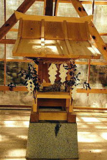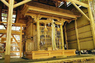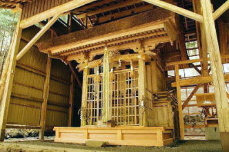 この地域は冬季の雪が深いため、社殿は覆屋内に建てられていた。
