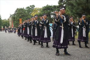![]() 鳥居までの参道 ![]() ![]() ![]() 拝殿 ![]() ![]() 本殿 ![]() 春日神社 ![]() 蛭子神社 ![]() 八幡神社 ![]() 神饌所 ![]() ![]() ![]() 社紋、丸に二文字 ![]() 社殿すぐ裏(南)を流れる桂川 ![]() 【参照】時代祭行列(10月22日)に参加する維新勤王隊列の鼓笛隊。京都御所 |