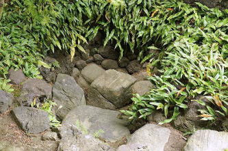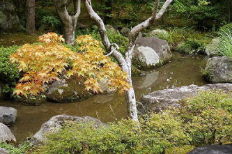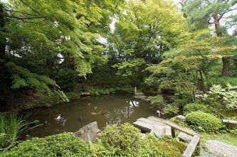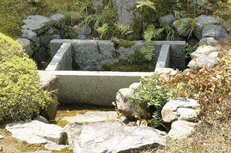 ![]() 明神川から庭に取り入れられた曲水川、かつては曲水の宴が行われていたという。 |