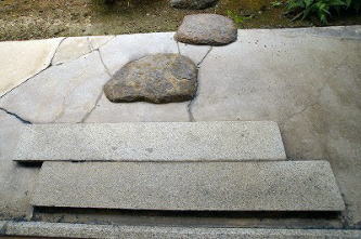 ![]() 深草三和土(たたき)、石灰、赤土、白川砂を水で練り、木のコテで叩いて固める。手間がかかるため、残っているところは少ないという。 |