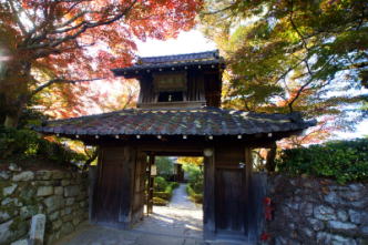 修学院離宮の南西に位置する禅華院(ぜんけ-いん/ぜんげ-いん)は、山号は解脱山(げだつさん)という。 臨済宗大徳寺派、本尊は釈迦如来。 ◆歴史年表 年代不詳、かつて天台宗であり、比叡山三千坊の一つだったという。この地一帯は、比叡山の西側にあり、大津市の坂本(東坂本)に対して西坂本(西の坂本)といわれ、延暦寺の末寺が多数存在していたという。 江戸時代、寛永年間(1624-1643)、大徳寺第170世・清厳宗謂により中興された。 現代、1977年、雲母坂地蔵2体が比叡山雲母坂より当院に遷された。 ◆清巌 安土・桃山時代-江戸時代前期の臨済宗の僧・清巌宗渭(せいがん-そうい、1588-1661)。男性。俗姓は佐々木、号は自笑、孤陋(ころう)、諡号は清浄本然禅師。近江(滋賀県)の生まれ。9歳で玉甫紹琮のもとで得度、兄弟子・賢谷宗良に学び、玉穂の法嗣となる。大徳寺第170世住持。堺の南宗寺塔頭徳泉庵・臨江庵のほか、東海、伊賀、九州などで各寺を開創した。書は中国南宋の張即之の影響をく受け、茶掛として珍重される。著『清巌禅師十八ケ条』(茶事の心得)。74歳。 千利休の孫・千宗旦(1578-1658)参禅の師で、裏千家の茶室「今日庵」の名は清巌に由来するという。清巌は、宗旦が招いた茶席に遅れる。宗旦は、清巌に翌日再訪することを求め外出した。清巌は「懈怠比丘不期明日(懈怠の比丘明日を期せず、怠け者の出家修行者に明日を期待しない)」と書き置いて帰る。宗旦は、「今日今日といひてその日をくらしぬる あすのいのちは兎にも角にも(今日の一日を大事に過ごさなければならない、明日の命はさておいて)」という一首を献じて詫びた。この一件に因み、「今日庵」と命名したという。 ◆仏像 ◈本堂の本尊の「釈迦如来」、左右脇侍に「地蔵菩薩」、「観音菩薩」を安置する。 ◈楠木正成(?-1336)の信仰があったという「圓通観音」、毘沙門天・弁才天と合体した「三面大黒天」も安置されている。 ◆石仏 境内にいくつもの石仏が各所から遷されている。 ◈最も古いものは、「雲母(きらら)坂地蔵」といわれる「弥勒菩薩坐像」、「阿弥陀如来」の2体になる。石仏の背に平安時代後期、「大治元年五月八日」(1126年)の銘がある。かつて、雲母坂の登り口、音羽谷にあった雲母寺(きらら-じ/うんも-じ)に安置されていた。寺は、平安時代末期の元慶年間(877-884)、天台宗の相応により創建され、比叡山延暦寺に属した。近代以降、1885年に廃寺になり、石仏は、現代、1977年に当院に遷されたという。 ◈雲母坂地蔵の「弥勒菩薩坐像」(66㎝)は、右手は施無畏印、左手は触地印を結ぶ。向背は丸味のある舟形で背後に、平安時代後期、「大治元年(1126年)五月八日」の銘がある。花崗岩製。 ◈雲母坂地蔵の「阿弥陀如来坐像」(60㎝)は、定印、光背は二重円光。花崗岩製。 ◈鎌倉時代後期の等身大の「石仏」2体は、隣接する修学院離宮の田園の中にあったものが遷されたという。 ◈「阿弥陀如来坐像」(180㎝)は、定印を結び、結跏趺坐する。厚肉彫、光背は二重円光、花崗岩製。 ◈「地蔵菩薩坐像」(166㎝)は、錫杖、宝珠を持ち蓮華坐に結跏趺坐する。厚肉彫、花崗岩製。 ◈ほかに「阿弥陀如来立像」は、光背の高さは136㎝ある。「釈迦如来坐像」(97㎝)、「弥勒菩薩立像」(118㎝)、「阿弥陀如来立像」、「弥勒菩薩坐像」、「薬師如来立像」、「大日石仏」などがある。 ◆建築 ◈「山門(鐘楼門)」の二層は、鐘楼になっている。江戸時代後期、1826年、修学院離宮(中御茶屋)の建物を移築し、修復した。 ◈「本堂」は、近代、昭和御大典御(1928)の際の建物の一部を移築し、翌1929年に再建された。 ◆庭園 庭は江戸時代初期の大名茶人・小堀遠州(1579-1647)作ともいう。 ◆紅葉 境内に数本の楓があり、紅葉も知られている。 *年号は原則として西暦を、近代以前の月日は旧暦を使用しています。 *参考文献・資料 『京都・山城寺院神社大事典』、『昭和京都名所図会 3 洛北』、『京都の寺社505を歩く 上』、『新版 京のお地蔵さん』 、ウェブサイト「コトバンク」 ![]() ![]() ![]() ![]() ![]() ![]() |