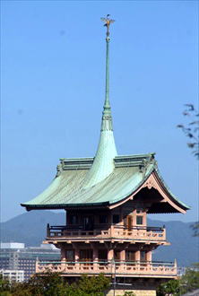 ![]() 総門 ![]() ![]() 総門 ![]() 南門 ![]() 南門 ![]() 南門 ![]() ![]() 本堂 ![]() 本堂 ![]() ![]() 鐘楼 ![]() 鐘楼 ![]() 祇園閣 ![]() ![]() ![]() ![]() ![]() 祇園閣、「祇園閣」の扁額、初層 ![]() 祇園閣、西園寺公望筆「祇園閣」の扁額、初層 ![]() 祇園閣、最上階の扁額、大倉喜八郎筆「萬物生物光輝」 ![]() 祇園閣の鉾先の鶴の飾り物 ![]() 祇園閣、初層の銅板の扉、鶴の彫り物がある。 ![]() 祇園閣、初層の銅板の扉、鶴の彫り物 ![]() ![]() ![]() 大倉喜八郎の別邸「真葛荘」(書院)(国登録有形文化財) ![]() 書院 ![]() 書院の六角の蹲踞 ![]() 弁財天 ![]() 佐土原藩戦没招魂塚 ![]() 平和観音 ![]() 仏足石 ![]() ![]() 圓山地蔵尊 ![]() 墓地 ![]() ![]() 織田信長・信忠の碑 ![]() 石川五右衛門の墓 ![]() 祇園閣からの東山の眺め ![]() 祇園閣からの八坂の塔、八坂の景観 ![]() 祇園閣からの南西の眺め、澄んだ日には二つのアンテナの間に大阪城が見えるという。近くの高台寺からも同じように見え、豊臣秀吉の側室・北政所(ねね、高台院湖月尼、1542-1624)は、1615年の大坂城落城の時、高台寺から城より立ち昇る煙を見ていたという。 ![]() 【参照】江戸時代中期の『都名所図会』に描かれている大雲院(ROIS-DS人文学オープンデータ共同利用センター) |