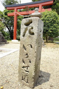 ![]() 一ノ鳥居右にある道標「いがいせ道」と記されており、古くより京都、大和、伊勢への分岐点として付近は交通の要衝地だった。伊勢までは徒歩で半日。江戸時代、天保戌年(1838?)の銘がある。 |