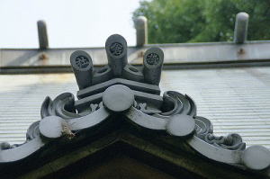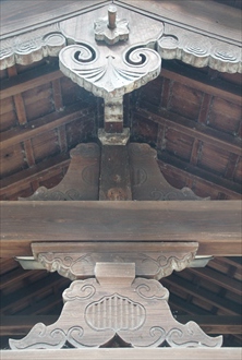 ◆建築 ◈ 「本殿」(京都市指定文化財)は、覆屋の中に建つ。江戸時代、1666に建立された。向拝の蟇股の輪郭、内部彫刻に時代の特徴がある。繋海老虹梁、象鼻がみられる。京都市内の春日造本殿が装飾が比較的少ないのに対し、当社本殿は装飾が豊かで、細部意匠にも江戸時代の特色を表す。一間社春日造、杮(こけら)葺。