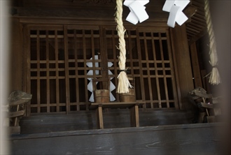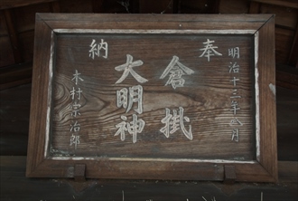 ◆祭神 倉掛の神は、五穀豊穣を祈る農耕神であり、かつて周辺で稲作を始めた人々が、米倉を建てて豊作を祈願した頃の名残りの神であり古い形態の神とみられている。