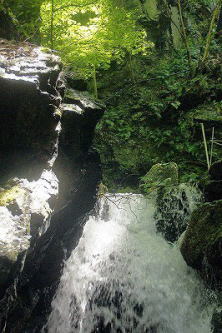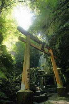 「空也」の扁額が掛る鳥居の奥に、高さ15mの滝が現れる。堂承川支流の水量豊かな瀑布であり、つねに激しい瀑風が吹き抜けている。 滝は「空也滝(くうや-たき)」「空也の滝」とよばれ、修行者の行場になっている。清浄な水が流れていることから、清滝の地名由来になったともいう。 ◆歴史年表 飛鳥時代、役行者(えん-の-ぎょうじゃ、634?-701?)が滝を開いたともいう。 平安時代中期、嵐山に居を構えた空也(くうや/こうや、903-972)が、月輪寺より滝を訪れ、霊場として開いたともいう。(『河海抄』) 室町時代、細川幽斎(ほそかわ ゆうさい、藤孝、1534-1610)が、愛宕参詣の折に月輪寺より日暮滝(寒蝉滝)を訪れ、「昨日今日秋くるからに日ぐらしの声打ちそふる滝のしら浪」(『衆妙集』秋部)と詠んだ。 ◆役行者 飛鳥時代の山岳呪術者・役行者(えん-の-ぎょうじゃ、634?-?)。役小角(えん-の-おづぬ/しょうかく)、役の優婆塞(えん-の-うばそく)、役君(えのきみ)。大和国に生まれた。賀茂一族(高賀茂朝臣)の出身ともいう。生駒山、葛城山、大峰、熊野で修行した。吉野金峰山を開く。32歳の時、葛城山で孔雀明王の像を岩窟に安置し、持呪観法したという。699年、弟子・韓国広足(からくに-の-ひろたり)は、役行者が妖言を吐いたと密告し、伊豆国に流罪にされる。701年、赦された。数多くの呪術的な伝承が残された。富士山、九州の山々で苦行し、前鬼、後鬼の二鬼を従えたという。神仏調和を唱え、真言密教の呪法を使う仏道修行者、呪術に優れた神仙、道教の医術方術に習熟した行者とさる。修験道の開祖になる。 平安時代初期-中期以降、山岳信仰、密教と結びつき伝説が生まれた。江戸時代、1799年、朝廷より神変大菩薩の勅諡号が贈られた。 ◆空也 平安時代中期の浄土教の僧・空也(くうや/こうや、903-972)。こうや上人、弘也(こうや)、光勝、寺を持たず常に市井にあったことから市聖(いちのひじり)、阿弥陀聖。第60代・醍醐天皇の第2皇子、第54代・仁明天皇皇子・常康親王の子ともいう。幼少より在家の優婆塞(うばそく)として全国を遍歴した。919年、17歳で市中の遺骸を念仏を唱えながら埋葬した。924年、尾張・国分寺で出家し、沙弥空也と名乗る。播磨、奥州、四国で修行し、934年、奥羽にも布教した。938年以来/天慶年間(938-947)、京都で念仏を広める。乞食、布施を得て貧者・病人に施した。939年、空也堂を開く。948年、比叡山・天台座主延昌から受戒し、光勝の法名を得る。終生、沙弥名の空也を名乗った。950年、浄財を集めて、金色1丈の十一面観音像、6尺の梵天・帝釈・四天王の像を造立した。951年、都に流行していた悪疫退散のために、自ら十一面観音を刻み、車に乗せ市中を曳き廻した。病人に茶を授け、歓喜踊躍の念仏踊で病魔を鎮めた。病人は平癒したという。その典茶・皇服茶(おうぶくちゃ、王服茶)は、身分の隔てなく分け与えられた。その時の踊躍は、六斎念仏として今も伝わる。963年/応和年間(961-964)、13年かけて金泥『大般若経』600巻の書写事業を完成させた。鴨川河原に宝塔/一寺(のちの西光寺、六波羅蜜寺)を建て盛大な供養会を行う。東山の西光寺(六波羅蜜寺)で没した。70歳。墓は全国に複数ある。 空也念仏の祖。諸国を巡歴し南無阿弥陀仏の名号を唱えた。各地で橋を架け、道路、感染防止のため井戸(阿弥陀井)の整備、遺棄された骸を火葬し荼毘(だび)に伏すなどの社会事業も行った。空也の菩薩行は行基につながる。称名念仏により、既存の国家、権勢、知識層の仏教から庶民の仏教を唱えた。後の法然、親鸞の専修念仏に影響を与える。一遍は空也を崇敬した。 ◆空也滝 平安時代中期、嵐山に居を構えた空也(くうや/こうや、903-972)が、この滝を霊場として開いたという。空也は、滝の北西、山の中腹に位置する月輪寺も訪れたという。ただ、空也が修行したとされる滝は、さらに一つ上流にある「ひぐらしの滝(寒蝉滝、日暮滝)」ともいう。 滝は、愛宕山南麓、月輪寺へ向う登山口から、清滝川支流の堂承川を上流に遡った大杉谷(250m)、丹波層群中のチャート地層にある。チャートとは、深海底でホウサンチュウなどの珪酸質の微生物による堆積岩であり、きわめて硬く、火打石などにも使われる。滝の高さは15mとも12m、幅1mともいう。 ◆社 滝の周辺には、八大竜王、弁財天、不動明王などが祀られている。 ◆愛宕山の不思議 愛宕山の不思議話の中に、「空也滝の土砂」は、取ってはいけないとされる。愛宕山の神は物への執着心が甚だ激しく、土砂などを持ち帰った者の身体の具合が悪くなったという。このため、昔は草履に付いた砂も払っていたという。 *参考文献・資料 『日本の名僧』、『京の怪談と七不思議』、『京都の地名 検証2』、『京都滋賀 古代地名を歩くⅡ』、『昭和京都名所図会 4 洛西』、ウェブサイト「コトバンク」 ![]() ![]() ![]() ![]() ![]() |