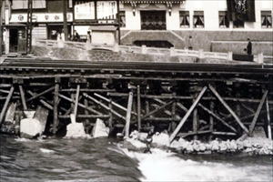 ![]() 四条大橋 ![]() ![]() ![]() ![]() 欄干のデザイン ![]() 歩道脇の柵、ユリカモメのデザイン ![]() ![]() ![]() 西岸、橋台 ![]() 西岸、橋台の旧四条大橋のアーチ ![]() 西岸、旧四条大橋の基礎杭(木杭)跡 ![]() 西岸、旧四条大橋の基礎杭(木杭)跡 ![]() 西岸、旧四条大橋の橋台の一部 ![]() 西岸、旧四条大橋の橋台、剥き出しの鉄筋痕跡 ![]() 東岸、旧四条大橋の橋台 ![]() 東岸、旧四条大橋の橋台、剥き出しの鉄筋 ![]() 東岸、旧四条大橋の橋台、鉄筋 ![]() 東岸、旧四条大橋の橋桁? ![]() 東岸、旧四条大橋・新四条大橋の橋台 ![]() 東岸、旧四条大橋橋台のアーチ ![]() 東岸、橋台 ![]() 「土木學会推奨土木遺産 賀茂川・鴨川河川構造物群」(2019年)のプレート ![]() 上流 ![]() ![]() ![]() ![]() 四条大橋から北方向、三条大橋、北山 ![]() 冠雪した北山 ![]() 【参照】室町時代後期の「上杉本洛中洛外図屏風」に描かれた四条大橋、御輿渡御の様子、京都土木事務所の鴨川の説明板より 【参照】江戸時代の「四条河原遊楽図屏風」、京都土木事務所の鴨川の説明板より![]() 【参照】江戸時代中期の『都名所図会』に描かれている四条河原夕涼(ROIS-DS人文学オープンデータ共同利用センター) ![]() 【参照】「皇室都祇園祭礼四条河原之涼」(五雲亭貞秀作、立命館大学アートサーチセンター蔵)、京都土木事務所の鴨川の説明板より ![]() 【参照】近代、1902年の四条大橋(ジャパンアーカイブス、琵琶湖疏水記念館の説明板より) ![]() 【参照】近代、明治期の四条大橋(矢野家写真資料、府立総合資料館蔵)、京都土木事務所の鴨川の説明板より ![]() 【参照】近代、大正期の四条大橋(黒川翠山撮影、府立総合資料館蔵)、京都土木事務所の鴨川の説明板より ![]() 大正期の四条大橋、灯籠が見える。上記写真の一部拡大 ![]() 大正期の四条大橋、鴨川沿いの京阪電気鉄道の軌道、上記写真の一部拡大 ![]() 【参照】近代、大正期の四条大橋(黒川翠山撮影、府立総合資料館蔵)、京都土木事務所の鴨川の説明板より ![]() 【参照】市電、上記写真の拡大 ![]() 【参照】四条大橋の絵葉書、七条大橋の説明より ![]() 【参照】近代、1935年の四条大橋東詰での「鴨川出水」の様子、京都土木事務所の鴨川の説明板より ![]() 西岸南、右は中華料理レストラン東華菜館、ヴォーリズが設計したスペイン風バロック建築。 ![]() 西岸、先斗町 ![]() 北方向、先斗町、西岸の納涼床 ![]() 南方向、西岸 ![]() 南座と鴨川、南座(国登録有形文化財) ![]() 現在唯一残る「芝居小屋」南座の正面。四条大橋東側 ![]() 屋根の最上階には官許の証である櫓がある。 ![]() 「まねき上げ(揚げ)」 ![]() 四条大橋東詰北、阿国像 ![]() 「阿国歌舞伎発祥乃地」の碑、四条大橋東側 ![]() 前進座の「出雲阿国」南座公演 ![]() 7月10日、鴨川にかかる四条大橋の上での神輿洗 ![]() 朝鮮通信使の行列 ![]() 「北座跡」の碑、川端通四条上ル東側 ![]() 四条大橋北、西岸の「みそそぎ川」に組まれた納涼床、遠景は四条大橋 ![]() 車石跡、四条大橋上流東岸、かつて牛荷車はここから鴨川を渡った。 ![]() 【参照】行願寺(革堂)にある車石の遺構、溝に沿って荷車が川に出入りしていた。 ![]() 【参照】1875年頃の荒神橋付近の牛荷車、京都土木事務所の鴨川の説明板より京都府の鴨川の掲示板より 車石、御香宮神社![]() 与謝野晶子の歌碑、川端四条上ル東 「四条橋 おしろい厚き 舞姫の 額ささやかに 打つ夕あられ」 ![]() 東詰南にある「京 ゆたかもの 雅」の碑 ![]() 【参照】かつて四条大橋を渡っていた市電 |