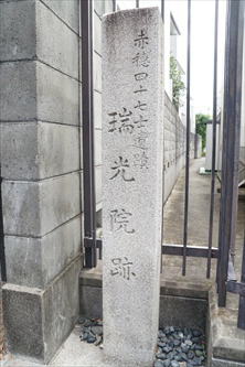 山科の瑞光院(ずいこう-いん)は、忠臣蔵ゆかりの寺院になる。山号は紫雲山という。 臨済宗大徳寺派。本尊は阿弥陀如来。 ◆歴史年表 安土・桃山時代、天正年間(1573-1593)、洛中に、武士・浅野長政の別荘地(現在の上京区瑞光院前町[ずいこういんまえ-ちょう])があった。 江戸時代、1613年/1611年、山崎家盛は、長政の没後に別荘を寺院に改める。大徳寺の琢甫宗林を開山とした。 1614年、家盛の没後、その法号に因み瑞光院と称した。大徳寺塔頭の一つになる。 1637年、当時の境内地が描かれている。(『洛中絵図』) 元禄年間(1688-1703)初期、2世・陽甫が、播州赤穂城主・浅野内匠頭長矩夫人・瑤泉院(ようぜいいん)の親戚(瑶泉院の母・寿光院は陽甫の姪)に当たったことから、長矩は壇越になり、浅野家の祈願寺になる。(『山州名跡志』『坊目誌』) 1701年、松の廊下事件で、浅野長矩が切腹する。大石良雄は、境内に長矩の短刀と衣冠を埋めて供養塔を立てた。この時、呉服屋・綿屋(安田)善右衛門が援助した。大石らは墓参の度に、当院で吉良邸討入の密談を行っていたという。 1703年/1702年、大石良雄らが切腹した際に、遺志に従い、46人の遺髪が長矩の傍らに葬られ、遺髪塔が立てられた。 1719年、四十六士の墓碑が立てられる。 現代、1962年、瑞光院は上京区より現在地(山科区)に移された。浅野稲荷神社も遷座する。 ◆浅野 長政 室町時代後期-江戸時代前期の武士・浅野 長政(あさの-ながまさ、1547-1611)。男性。尾張国(愛知県)の生まれ。父・安井弥兵衛尉重継の長男。母の兄・浅野又右衛門長勝の養女・ややと結婚し浅野家を継ぐ。長勝のもう一人の養女は秀吉の妻・ねねになる。織田信長、秀吉に仕えた。1573年、秀吉が浅井氏滅亡後、近江で知行を与えられた。1582年頃、杉原家次と共に京都奉行になり、その後、前田玄以と当る。太閤検地の始まりの山城国検地奉行に就く。1583年、賤ヶ岳の戦い後、近江の甲賀・栗太に石を与えられた。1584年、近江坂本城、大津城、1587年、若狭一国を与えられ、小浜城主になる。1588年、従五位下・弾正少弼に叙任された。1592-1593年、文禄の役で、肥前名護屋城の普請、軍監として渡海し、石田三成と対立する。1593年、甲斐府中城主。1598年、五奉行。増田長盛により甲斐に閉居させられた。1600年、関ヶ原の戦で、子・幸長と東軍に属した。囲碁を好み、対局した家康は長政没後は囲碁を絶ったという。65歳。 ◆山崎 家盛 室町時代後期-江戸時代前期の大名・山崎 家盛(やまざき-いえもり、1567-1614)。男性。近江(滋賀県)の生まれ。父・山崎片家の長男。父没後、1591年、摂津三田城城主。1600年、関ヶ原の戦いでは、徳川方としての動きを見せるが、実際は石田方として動いた。細川藤孝の丹後国田辺城攻め(田辺城の戦い)に参戦した。戦後、池田輝政のとりなしにより家康に仕えた。戦いでの責を問われるが回避し、1601年、因幡国若桜藩初代藩主に加増転封になる。48歳。 ◆瑤泉院 江戸時代前期-中期の瑤泉院(ようぜんいん/ようぜいいん、1674?-1714)。女性。阿久里(あぐり)。父・浅野長治(初代備後国[広島県])三次藩主)、母・浅野長重(浅野長矩の曽祖父)の娘の3女。父没後、浅野長照の養女になる。1683年、播磨国赤穂藩主・浅野長矩と婚姻する。子に恵まれず、1696年、長矩の弟・浅野長広を養子とした。1701年、長矩が吉良義央を江戸城内で傷つけ、切腹、領地没収になる。その後、落飾し、瑤泉院と称し夫の菩提を弔う。1702年、元赤穂藩家老・大石良雄らの吉良邸討入に際し、赤穂塩田よりの運上銀を大石に託した。吉良討取り後、切腹になった赤穂浪士遺児で、伊豆大島へ流された吉田伝内らの赦免に尽力した。1706年、3人の恩赦を実現させた。 夫と同じ、江戸高輪・泉岳寺に葬られた。戒名は瑤泉院殿良瑩正燈大姉。三次・鳳源寺に五輪の遺髪塔がある。 ◆大石 良雄 江戸時代前期の武士・大石 良雄(おおいし-よしお/よしたか、1659-1703)。男性。幼名は喜内、内蔵助(くらのすけ)。父・播磨国(兵庫県)赤穂藩の重臣・権内良昭。父没後、祖父・内蔵助良欽の家督を嗣ぐ。若くして赤穂藩の家老職になる。山鹿素行に軍学、伊藤仁斎に漢学を学んだ。1701年旧3月14日、主君・浅野長矩(あさの-ながのり、浅野内匠頭)は江戸城松之大廊下で、高家(こうけ)・吉良義央(きら-よしなか、上野介) に対し、遺恨による刃傷事件を起こした。将軍・徳川綱吉の意向により、長矩は即日切腹、浅野家はお家断絶、領地没収になる。義央に咎めはなかった。旧赤穂藩内には、義央への仇討を主張する急進派と、御家再興の穏健派の対立が起こる。城代家老・良雄は、藩内の急進派を抑え、幕府に義央処分、長矩の弟・大学による浅野家再興を嘆願した。1701年旧4月11日、良雄は、藩家中をまとめ赤穂城を明渡した。旧6月25日、赤穂・花岳寺で長矩の百カ日法要を行う。旧6月27日、山科西野山村に隠棲した。屋敷は一町四方だったという。山科には、大石家親族・進藤長之(近衛家家臣)の土地があり、支援があった。(山科閑
