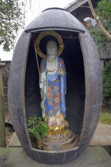 七本松通下立売を上った寺院建ち並ぶ一角に大雄寺(だいお-じ/だいゆう-じ)はある。山号は金龍山という。儒医者・松下見林、映画監督・山中貞雄の墓がある。 浄土宗黒谷派。本尊は阿弥陀如来。 ◆歴史年表 安土・桃山時代、1602年、開山は慶誉(けいよ)上人による。(寺伝)。心誉ともいう。 1603年、心誉による創建ともいう。(『蓮門精舎旧詞』) 江戸時代、1735年、檀中の山本仁兵衛により地蔵尊が寄進された。 1788年、天明の大火により焼失する。その後、再建された。 現代、1996年、地蔵尊が修復復元された。地蔵堂が再建される。 2015年、本堂、庫裏、山門が改築された。 ◆慶誉 安土・桃山時代の浄土宗の僧・慶誉(けいよ、 ?-?)。詳細不明。男性。1602年、大雄寺を創建した。 ◆松下見林 江戸時代前期の儒医者・松下見林(まつした-けんりん、1637-1703)。男性。大坂の生まれ。医学、儒医、国学、算術、経学にも通じた。京都で医学、経書を教授した。晩年は高松藩に仕えた。『日本三代実録』を校訂出版した。外国資料による日本史研究書『異称日本伝』、陵墓考証の先駆『前王廟陵記(ぜんのうびょうりょうき)』(1696)などを著した。 墓は大雄寺にある。 ◆山中貞雄 近代の映画監督・山中貞雄(やまなか-さだお、1909-1938)。男性。京都の生まれ。生家は扇子商を営んだ。1927年、京都市立第一商業学校卒業後、先輩のマキノ正博を頼りマキノ御室撮影所に入社、助監督、脚本執筆をする。その後、嵐寛寿郎の東亜キネマに移り、1929年、脚本を書いた「鬼神の血煙」が映画化された。1年間、京都・福知山の連隊に入隊する。1932年、初監督作品「磯の源太 抱寝の長脇差」が注目を浴びる。日活京都撮影所に移籍後、傑作「盤獄の一生」を撮る。1934年、脚本家の集まり「鳴滝組」を稲垣浩、滝沢英輔、八尋不二らと結成し、トーキーの時代劇シナリオを発表した。この頃、小津安二郎を知る。最高傑作といわれる「街の入墨者」(1935)、1937年、P.C.L.(のちの東宝)に入社し上京し、最後の作品になった「人情紙風船」(1937)を完成させた。その日、召集令状が届く。中国戦線へ送られ、開封の野戦病院で戦病死した。 20本以上の作品がある。現存する作品は3本ある。「丹下左膳余話 百萬両の壺」(1935)、「河内山宗俊」(1936)、「人情紙風船」(1936)になる。いずれも、世界映画史に輝く傑作といわれている。従軍記の中に次の言葉を記した。「『人情風船』が山中貞雄の遺作ではチトサビシイ」。28歳。 軸としていた山中を喪い「鳴滝組」は事実上の解散をした。八尋ら3人は山中の遺影を前に、追善映画「その前夜」「(監督・萩原遼、1939、東宝映画)の脚本を執筆したという。新選組の池田屋襲撃事件を題材とし、原案は山中、脚本は共同ペンネーム「梶原金八」による。 大雄寺に墓がある。墓には、山中が亡くなった中国の病院跡地の土が納められたという。 ◆仏像 本堂に本尊「阿弥陀如来立像」を安置している。 ◆地蔵尊 「地蔵尊」は、卵形の地蔵堂内に安置されている。江戸時代中期、1735年に檀家の山本仁兵衛により寄進された。現代、1996年に檀家の募金により修理復元されている。極彩色。 ◆建築 現代、2015年に、本堂、庫裏、山門が改築された。 本堂の広間に茶室がある。 ◆文化財 かつて、平安時代の恵心(942-1017)作という「弥陀三尊絵像」、毘首羯摩(びしゅかつま)作という「釈迦婆伽梵の像」、平安時代の小野篁(802-853)作という「観音大士尊像」があったという。(『浄家寺鑑』)。 江戸時代後期、1788年の天明の大火によりいずれも焼失した。 ◆盆石 和州遠山流の「盆石(ぼんせき)」作品が常時展示されている。盆上に自然石を立て、小石、砂を配し、山水、風物を描写する。大自然を表現した縮景芸術の一つとされている。 起源は飛鳥時代、第33代・推古天皇(554-628)の頃ともいう。室町時代に流行し観賞された。打つ場合の態度、手順などの作法が定められている。 ◆墓 境内西の墓地には、江戸時代の儒医者・松下見林の墓がある。 近代の映画監督・山中貞雄の墓がある。 ◆碑 境内に、戦前の映画監督で、日中戦争により中国で戦病死した山中貞雄の墓碑が立つ。碑は、近代、1941年、天才的な監督と謳われた山中を偲び、友人たちが集まり建立した。追悼の碑文は、山中の親友の映画監督・小津安二郎(1903-1963)が揮毫した。 9月17日の命日前後には、戦前から続く「山中忌」が催されている。1984年からは「山中貞雄を偲ぶ会」が開催されている。 山中貞雄之碑 山中貞雄死を聖戦の大義に奉り忠魂永へる靖国の社に招かる。山中貞雄生を芸能の大道に致し鬼雄千載映画の史乗に耀かん。 君ハ明治四十二年十一月七日京都市五條本町に喜左衛門氏五男として生る。学業を京都一商に卒へるや性来信愛措かざりし映画の道に志を得べくマキノ撮影所に入り脚色及び監督助手の任に精励す。後、寛寿郎映画に転じ始めて宿志を延べ監督として処女作「抱寝の長脇差」を作り才幹の凡ならざるを示す。二十三歳の秋なり。爾後作品を重ねる