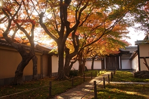大徳寺境内の南東に塔頭の黄梅院(おうばい-いん)はある。織田信長、冬姫、豊臣秀吉、小早川隆景、蒲生氏郷、千利休、武野紹鷗らとのゆかりがある。 臨済宗大徳寺派大本山。本尊は釈迦如来。 御朱印(特別拝観時)が授けられる。 ◆歴史年表 創建の詳細、変遷は不明。 室町時代、1562年、織田信長は初めて上洛した。父・信秀の追善菩提のために、京都所司代・羽柴(豊臣)秀吉に命じ、小庵の「黄梅庵」を建立させた。開祖は、大徳寺98世住持・春林宗俶(しゅんりん-そうしゅく)による。庵名は、弘忍(ぐにん)大満ゆかりの中国黄梅県破頭山東禅寺に由来する。 また、安土・桃山時代、天正年間(1573-1592)、小早川隆景が宗俶を開山として創建したともいう。没後、その法名により院号としたともいう。(『都林泉名勝図会』)。また、大徳寺112世・玉仲宗琇(ぎょくちゅう-そうしゅう)が、隆景の帰依により再興し、隆景の法号に因み「黄梅院」に改めたともいう。 1582年、本能寺の変で自刃した信長の密葬は大徳寺で執り行われた。その塔所として黄梅庵が改築される。同年、秀吉は、主君・信長の塔所としては「小なり」とし、大徳寺山内に総見院を建立した。秀吉により黄梅院の本堂、唐門が造営される。 1586年、2世・玉仲宗琇の時、秀吉により本堂、唐門が改修されたともいう。同年を創建年ともする。隆景の協力があったともいう。 1588年、隆景を開基、宗俶を開祖として創建されたともいう。黄梅庵が落成する。 1589年/1588年、黄梅庵より院号の黄梅院に改称されたともいう。宗琇が辞し、師・宗俶が勧請開祖になる。隆景の普請奉行のもとで庫裏、表門が改築され、本堂(客殿)が建てられたともいう。以後、小早川家の塔頭所になり、毎年寺領100石が寄進される。 近世(安土・桃山時代-江戸時代)、南派独住により護持される。 慶長年間(1596-1615)、小早川家宗家の宗家・毛利氏が外護した。 江戸時代、元和年間(1615-1624)、5世・旧嶽宗容溪(きゅうがく-そうよう)は法系が絶え、藍溪宗瑛(らんけい-そうえい)を嗣法し、大慈院下になる。 1652年頃、書院が建てられたという。 現代、1977年、本堂が解体修理される。 1985年、庫裏が解体修理になる。 1999年、茶室「一枝庵」が完成した。 ◆春林 宗俶 室町時代後期の臨済宗の僧・春林 宗俶(しゅんりん-そうしゅく、1488-1564)。男性。号は咄々斎、諡号は仏通大心禅師。丹後(京都府)の生まれ。大徳寺の悦溪宗忢(えっけい-そうご)、小溪紹怤(しょうけい-じょうふ)に参じ、91世・徹岫宗九(てっしゅう-そうきゅう)を嗣ぐ。1536年、養徳院に居した。1544年、大徳寺98世になる。但州に円通寺を創建し、織田信長の帰依を受け、泉州堺に禅通寺を再興する。1553年、第105代・後奈良天皇より仏通大心禅師の諡号を贈られる。77歳。 黄梅院(北区)が塔所になる。 ◆織田 信秀 室町時代後期の武将・織田 信秀(おだ-のぶひで、1508-1551/1549/1552)。男性。通称は三郎、弾正忠(だんじょうのちゅう)、備後守、法名は桃厳道見。尾張国(愛知県)の生まれ。父・信定、子・信長。尾張国守護代・清洲(きよす)の織田大和守敏定の三奉行の一人で、当初は勝幡(しょばた)城を本拠城にした。1533年/1538年頃、今川氏豊を那古野(なごや)城から追い、尾張で勢力拡大する。1534年、熱田の北の古渡に城を築く。1542年、駿河・今川義元と三河・小豆坂(あずきざか)で戦い勝利した。1543年、禁裏築地修理料4000貫文を献上した。1547年、斎藤道三を美濃・稲葉山城下まで攻め大敗する。1548年、道三の娘・濃姫を子・信長に娶らせ道三と和議を結ぶ。1549年、犬山城の織田信清(信秀の弟・信康の子)が反乱し、三河・安祥城が義元に奪回された。末森(すえもり)で没した。41歳?。 三河松平氏を抑え、織田氏発展の基礎を築く。墓は万松寺(名古屋市)にある。 ◆織田 信長 室町時代後期-安土・桃山時代の武将・織田 信長(おだ-のぶなが、1534-1582)。男性。幼名は吉法師(きちほうし)、三郎、官名は上総介(かずさのすけ)。尾張(愛知県)の生まれ。父・守護代家老・織田信秀、母・土田御前の3男。1546年、元服し、1547年、三河へ初陣する。1549年、美濃・斎藤道三の娘・濃姫と結婚した。1551年、父没後、家督を継ぐ。1557年、弟・信行らの反乱を抑え、1558年、信行を暗殺した。1559年、岩倉城主・織田信賢を破り尾張国を統一した。1560年、桶狭間の戦で駿河・今川義元を討つ。1562年、三河・松平元康(徳川家康)と同盟を結ぶ。1563年 、本拠を小牧山城に移転した。 1567年、美濃・斎藤龍興を滅ぼし、稲葉山・井ノ口城を岐阜城に改める。1568年、近江・六角義賢を追い上洛し、足利義昭の将軍職就任を助けた。二条御所の造営を行う。1569年、北伊勢・北畠氏を屈伏させ、二男・信雄を養子に入れる。イエズス会・フロイスの京都往還を許した。軍資金提供を要求し拒否した自治都市・堺を攻める。1570年、姉川の戦で信長・家康の連合軍は浅井長政・朝倉義景の連合軍を破る。摂津で三好三人衆を討ち、石山本願寺との合戦も起こる。1570年-1574年、伊勢・長島の