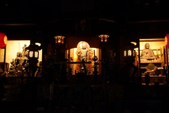 京都駅の西北、高層建物群に取り囲まれるようにして、不動堂明王院(ふどうどう-みょうおういん)は建つ。不動堂とも呼ばれている。北隣には、道祖神社がある。「不動堂村」の地名は当院に因むとされる。 西山浄土宗、本尊は空海作という霊石不動明王。 ◆歴史年表 創建、変遷の詳細は不明。 平安時代、823年、真言宗開祖・空海が教王護国寺(東寺)を建立した際に、寺の東北の鬼門に当たるこの地に、法域守護のために、不動尊を祀ったことに始まるという。尊像は、空海がこの地で発見した「妙霊なる石」に自らが刻んだという。この霊石不動は石棺に納められ、地中の井戸深く安置されたという。 899年、第59代・宇多法皇(867-931)は、東七条御所(亭子院)を営むにあたり、この霊石を掘り出させようとした。霊石不動を見たものの眼を痛め、恐れをなしたため果たせなかったという。法皇は、勅を出して井戸を封じさせた。以来、大きな堂宇を営み、霊石不動明王の号を贈り、念持仏とした。法皇は仁和寺第1世であり、以後、真言宗御室派総本山・仁和寺の直属道場になった。 室町時代、応仁・文明の乱(1467-1477)により、御所、不動堂も焼失した。その後、堂宇は再建される。 江戸時代、1695年、亭子院が法金剛院(右京区)に子院として移された。不動堂は残る。南400mの現在地に移転し、独立し不動明王院と称した。 1764年、現在の本堂の修復が行われている。 1782年、西山浄土宗に改宗した。 1864年、禁門の変の兵火では、火の手は不動堂前で止まり焼失を免れたという。 ◆本尊 本尊は、奈良時代-平安時代前期の空海(774-835)の一刀三札により刻まれた「霊石不動明王」という。不動明王は現在も井底に封じられたままであり、誰の目にも触れていないという。 御前立として「不動尊立像」を安置する。右脇侍として「弘法大師像」、左脇侍として「役行者像」を安置する。 不動尊立像は俗に、空海作の三不動尊(ほかに、高野山派切不動尊、成田不動尊)のひとつといわれている。江戸時代後期、1864年、禁門の変の際の兵火は、不動堂前で留まり堂の焼失を免れたという。井戸内の不動明王の霊験によるといわれた。また、「智証大師作の名不動」とも呼ばれ、名不動七か所参りの「二番ふだうどう 七条油小路」と記されている。(『京すずめ案内書』) ◆亭子院 亭子院(ていじのいん)は、西洞院大路の西、油小路の東、七条坊門小路南、北小路北の方一町にあった。現在の植松公園(下京区植松町)は、敷地の東北部に当たる。 平安時代前期、第53代・淳和天皇の女御・永原原姫(? -868)の邸宅であり、池中の中島に亭(亭子、あずまや)を設けていたことから亭子院と呼ばれた。原姫没後、大納言・藤原基経(836-891)の別邸になる。その娘・温子(872-907)は、第59代・宇多天皇の女御(後に中宮)になり、亭子院は里第(東七条宮)になる。宇多法皇は御所とし、御息所・藤原褒子(?-?)などが住した。第60代・醍醐天皇も度々行幸した。 温子の女房に歌人・伊勢(872頃- 938頃)がいた。宇多上皇により、平安時代中期、911年、亭子院酒合戦、913年、亭子院歌合などの宴が催されている。931年に宇多上皇没後、寺院に改められる。 南北朝時代、1389年、足利義満は油小路の東、七条坊門小路の南の4町を安堵した。室町時代後期、応仁・文明の乱(1467-1477)により被災する。江戸時代、1695年、法金剛院(右京区)に子院として移された。不動堂は移らず、南400mの現在地に移転し、独立し不動明王院と称した。近代、1868年に亭子院は廃絶している。 ◆年間行事 修正会(1月2日)、涅槃会(2月中旬)、花祭り(4月8日)、成道会(12月8日)。 護摩木法要(毎月28日)。 *年間行事は中止・日時・内容変更の場合があります。 *年号は原則として西暦を、近代以前の月日は旧暦を使用しています。 *参考文献・資料 『京都市の地名』、『平安京散策』、『昭和京都名所図会 5 洛中』、『京都新選組案内』、『新選組大事典』、『新選組と幕末の京都』、『京都史跡事典』 、ウェブサイト「コトバンク」 ![]() ![]() ![]() ![]() ![]() ![]() ![]() ![]() ![]() ![]() |
