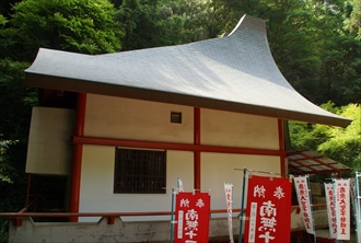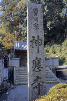 神応寺(神應寺、じんのう-じ)は、石清水八幡宮の鎮座する男山の谷筋を隔てた北の山、鳩ヶ峰の西にある。山号は糸杉山(絲杉山、ししんざん)という。 曹洞宗、本尊は薬師如来。 ◆歴史年表 創建の詳細、変遷は不明。 平安時代、860年/貞観年間(859-877)、石清水八幡宮を創建した行教が一宇を建立したことに始まるという。第15代・応神天皇(201-310)の御牌所として建てられたという。当初は、四宗兼学(天台、真言、法相、律)の道場だった。(『石清水雑記』)。別当寺としたという。かつて、応神寺(應神寺)と称したという。 鎌倉時代以降?、曹洞宗峩山派になり、神応寺と改称した。寺号は、石清水八幡宮が宇佐神託に応じ遷座したことにより、開祖・行教住坊の号としたことによるという。 室町時代、足利将軍家は禅宗に改め、本尊を釈迦如来像として安置した。行教作という旧本尊・不動像は奥院(杉山不動、谷不動)に遷された。 その後、廃れる。 安土・桃山時代、文禄・慶長の役(1592-1593・1597-1598)の際に、豊臣秀吉は石清水八幡宮に参詣し、当寺に止宿した。秀吉は200石の寺領を贈る。 豊臣秀頼(在位:1598-1615)の頃、衣冠束帯の秀吉木像を安置し、当寺を擁護する。 安土・桃山時代-江戸時代、曹洞宗の弓箴善疆(きゅうしん-ぜんきょう)が再興し、中興2代になる。 慶長年間(1596-1615)、尾張の曹洞宗正眼寺の末寺になる。 江戸時代、廓翁(かくおう)の時、3代将軍・徳川綱吉(在位:1680-1709)の帰依を受ける。奥院不動尊像に帽額戸帳が奉納された。幕府により江戸、大坂、堺などでの托鉢勧化の免許を得て寺運隆盛になる。以後、徳川家が代々帰依した。 道之の時、本尊は薬師如来像に改める。 近代、1873年、継弓社(石清水八幡宮の旧開山堂)が廃され、行教律師坐像が当寺に遷される。 1935年、8月、不動堂・籠堂・絵馬堂など山林崩落で倒壊した。 ◆行教 平安時代の僧・行教(ぎょうきょう、?-?)。男性。父・紀魚弼(きの-うおすけ)。東寺長者・益信(やくしん)の兄ともいう。行表に師事した。大和・大安寺(だいあんじ)で三論、密教をまなぶ。859年、第56代・清和天皇の即位に伴い、藤原良房の命により、豊前・宇佐八幡宮に参籠した。平安京の近くに遷座する託宣を受け、山城国男山に社殿を建てた。860年、八幡神を勧請し、石清水八幡宮とした。861年、宇佐で『大般若経』などの講読を行い、石清水八幡宮に15僧を置いた。863年、伝灯大法師位。 弟子で甥の安宗は、宇佐で一切経を書写し、875年、行教の没後に完成させた。 ◆弓箴 善彊 安土・桃山時代-江戸時代前期の曹洞宗の僧・弓箴 善彊(きゅうしん-ぜんきょう、?-1614)。詳細不明。男性。善疆。尾張(愛知県)中村の生まれ。朝鮮出兵に際して、名護屋の陣所まで随従し、豊臣秀吉の信頼を得たという。秀吉と同郷の朋友であり、康徳寺の開基・長岩の弟子。1590年以降、康徳寺の住持になった。八幡・神応寺の中興の祖になる。1606年、高台寺を開く。1614年、桂林院に退隠する。 第107代・後陽成天皇より禅師号「仏性真空禅師」を勅賜した。北政所が帰依した。 ◆廓翁 江戸時代の僧・廓翁(かくおう、?-1708)。詳細不明。 ◆淀屋 常安 江戸時代前期の豪商・淀屋 常安(よどや -じょうあん、?-1622)。男性。姓は岡本、通称は与三郎。山城(京都府)の岡本庄の生まれという。大坂に出て、十三人町で材木商「淀屋」を始めた。豊臣秀吉から築堤工事を請け負う。1615年、大坂夏の陣で、徳川家康の茶臼山本陣の本陣小屋、秀忠の岡本本陣の陣小屋構築などを請負い、特権商人になる。1616年、幕府より八幡の山林300町歩を拝領した。幕府の許可を得て、中之島を開拓して移住した。淀屋橋架橋、青物市場なども開設した。 豪商淀屋の初代、以後、5代続く。 墓は神応寺(八幡市)にある。 ◆淀屋 言当 安土・桃山時代-江戸時代前期の豪商・淀屋 言当(よどや-げんとう)1576-1643)。男性。通称は辰五郎、号は个庵(こあん)。淀屋2代目になる。海部堀川を開削し、「永代浜」を設け海産物市場を開く。京橋南詰の所有地に青物市場を設ける。米市のため、門前の土佐堀川に淀屋が淀屋橋を架橋した。財政難に陥った大名に蔵米を担保として「大名貸し」をする。 淀屋の経営基盤が固まる。 墓は神応寺(八幡市)にある。 ◆淀屋 辰五郎 江戸時代中期の豪商・淀屋 辰五郎 よどや-たつごろう、?-1718/1717)。男性。姓は岡本、名は広当、通称は三郎右衛門、難波長者と呼ばれた。大坂の淀屋5代目になり、大名貸などで諸大名を凌ぐ富を持つ。1705年、幕府により過ぎた生活を咎められ全財産没収される。大坂三郷(さんごう)から所払いの闕所(けっしょ)処分になる。八幡に移り亡くなる。30歳。 近松門左衛門の「淀鯉出世滝徳(よどごいしゅっせのたきのぼり)」などの題材になった。 墓は神応寺(八幡市)にある。 ◆右衛門佐局 右衛門佐局(うえもんのすけ-の-つぼね、?-1706)。女性。父・水無瀬氏信/水無瀬兼俊。宮中に勤仕し、新上西門院(第代・霊元天皇中宮)に侍し、常磐井と称した。江戸幕府5代将軍・徳川綱吉の御台所