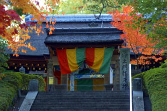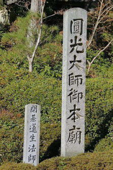 西山の地、長岡京市の光明寺(こうみょう-じ)は、粟生(あお/あおう)光明寺ともいわれる。「もみじ寺」とも呼ばれる。 境内は、小塩山支峰・烏ヶ嶽の斜面を利用して建てられている。境内(1万7000坪、5万6000㎡)は、庫裏などの建つ「人界」、御影堂などの建つ「天界」、法然の本廟などがある「極楽界」の三つに分かれている。 山号は報国山、院号は念仏三昧院という。 西山浄土宗総本山。本尊は、御影堂に法然自作の法然源空像(張子の御影)、阿弥陀堂に阿弥陀如来像を安置する。 「西山三山」(ほかに、吉峯寺、楊谷寺)のひとつ。千手観音は京都洛西三十三所観音霊場第7番札所。法然上人(圓光大師)二十五霊場第16番。京の通称寺霊場元札所、抱留之弥陀(だきとめのみだ)。 ◆歴史年表 創建、変遷の詳細は不明。 平安時代末期、1175年、法然は、西山の広谷(ひろたに、現在の寺域裏山? 、廟所付近とも)に住み、この時、円照につく。さらに、東山吉水に移ったともいう。(『法然上人絵伝』) 鎌倉時代、1198年、蓮生(れんせい、熊谷直美)は法然の勧めにより、この地、粟生に茅屋を建てた。さらに、仏殿を建て六尺の阿弥陀像を安置する。法然を開山とし、自らを2世とした。院名を念仏三昧院とする。意味は奥深い山里が、念仏三昧の道場にふさわしいとしたことによる。法然は親筆の寺額を与えたという。蓮生は、近江堅田・浮御堂の千体仏中尊・阿弥陀仏を遷し、本尊として安置したという。(『光明寺縁起』『平家物語』) その後、寺は法友の3世・幸阿弥陀仏(1172-1238)に託される。 1207年、法然は讃岐配流の途中、母の手紙で張子御影を自作した。その後も御影は当寺に安置されたという。 1208年、蓮生没後、遺骨は当寺に納められた。蓮生影像が安置され、蓮生は2世・祖師になる。 1227年、嘉禄の法難により、比叡山衆徒は法然の墓を破却した。(『明月記』)。法然の遺骸は嵯峨、太秦に遷される。 1228年、この地、粟生野幸阿のもとで法然の遺骸は荼毘に付された。本廟が建立される。(『法然上人絵伝』)。この時、広隆寺来迎坊の法然棺より瑞光が発せられ、午未(南南西)の方向を示した。弟子らは方角の地、この地に集まり法然の遺体を火葬したという。以後、法然祖師信仰の根本道場になる。 1233年、法然の遺骨は、湛空により嵯峨・二尊院に遷されたともいう。(『法然上人絵伝』) 1238年、3世・幸阿弥陀仏の没後、4世・証空(1177-1247)が入寺以来、西山浄土宗として栄える。楼門、三重の塔を建立したという。 証空弟子で西山義西谷流の祖・法興浄音(1201-1271)が6世として住し同流の寺となる。 1242年、倍山無壁の時、法然の棺が光明を放ったとして、第87代・四条天皇の勅額「光明寺」を贈られ念仏三昧院に改められる。 南北朝時代、1333年、元弘の兵乱により荒廃した。 室町時代、応仁・文明の乱(1467-1477)により焼失する。 1507年、15世・乗運空撮の時、第104代・後柏原天皇より西山義第一の寺であるとして、香衣を着しての参内を許される。 1534年、16世(17世とも)・舜空秀旭の時、第105代・後奈良天皇の勅願所になり紫衣の綸旨も受けた。 1535年、紫衣勅許の綸旨が下されるともいう。 1563年、第106代・正親町(おおぎまち)天皇により、「浄土門根元地」とする綸旨(りんじ、命令)を贈られる。 1571年、元亀の乱(元亀の法難)で焼失した。 安土・桃山時代、明智光秀(1528-1582)により、寺領が安堵される。 1582年、山崎の戦いで光秀により、方丈、庫裏が焼失している。 江戸時代、寛永年間(1624-1644)までに堂舎も復興し、徳川家康の外護も得る。 17世紀(1601-1700)半、32世・倍山俊意が本廟、伽藍を整備する。壇林の復興を行い、中興の祖になる。 1655年、常紫衣の寺になる。 1656年、御廟が再建された。 貞亨年間(1684-1688)初め、光明寺の後山の広谷に、広谷庵室跡が推定され、光明寺も知られるようになったという。(『山州名跡志』) 1734年、御影堂が焼失した。また、本廟、鐘楼以外は焼失したともいう。 1753年、17年の歳月をかけ御影堂が再建された。 1799年、阿弥陀堂が再建される。 1860年、長州藩士上洛時に山口直は光明寺を借入し、糧食を調達している。 1864年、禁門の変(蛤御門の変)で、長州藩兵が布陣した。 現代、1986年、位牌堂が建てられた。 ◆円照 平安時代後期の念仏聖・円照(えんしょう、1139-1177)。男性。号は遊蓮房。父・藤原通憲(信西)。1159年、平治の乱で藤原信頼に殺された父に連座し、配流され21歳で出家した。西山の広谷に住し、善導大師を思い、称名念仏に励んだ。法然は円照により専修念仏に帰依したという。 臨終に当たり、9編の念仏を終えた師に対し、法然は、今一念と促し、円照は一念して息絶えたという。法然は師を、「浄土の門と遊蓮房とにあへるこそ、人界の生をうけたる思出にて侍れ」と評した。38歳。 ◆法然 平安時代後期-鎌倉時代前期の浄土宗の僧・法然(ほうねん、1133-1212)。男性。幼名は勢至丸、諱は源空、号は法然房、勅諡は円光大師、通称は黒谷上人。美作国(岡山県)の生まれ。父・押領使