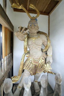亀岡市宮前町の田園地帯、旧篠山街道沿いに建つ小寺、谷性寺(こくしょう-じ)は、山号を清瀧山(せいりょう-ざん)という。安土・桃山時代の武将・明智光秀ゆかりの寺であることから光秀寺、境内に桔梗が咲き乱れることから桔梗寺ともいう。 真言宗大覚寺派。本尊は不動明王。 近畿楽寿観音霊場25番札所。 ◆歴史年表 創建、変遷の詳細は不明。 平安時代、創建されたという。 安土・桃山時代、1582年、明智光秀没後、墓碑が建立された。家臣・溝尾庄兵衛の命により本尊の不動明王が寺に安置されたという。 江戸時代、1855年、首塚が建立されている。 ◆明智光秀 室町時代後期-安土・桃山時代の武将・明智光秀(あけち-みつひで、1528?-1582)。名は十兵衛、惟任日向守(これとうひゅうがのかみ)。美濃(岐阜県)に生まれた。明智光綱の子。美濃の土岐氏支流ともいう。娘は細川ガラシャ。初め斎藤氏に仕えた。越前・朝倉義景に仕え、1566年、織田信長に仕えた。1567年、滝川一益に従い北国征伐に加わる。1568年、信長入京に当たり、政務に当り足利義昭のために公家側に働きかけた。1569年、公家寺社領仕置などに携わる。信長と義昭の対立を仲介する。1570年、信長の摂津、近江の出陣に従う。1571年、近江・坂本城主になる。1572年、浅井氏の小谷城包囲に参加する。1573年、越前朝倉氏攻略に加わる。1574年、大和多聞山城を守備し、美濃、河内に転戦した。1575年、功により惟任日向守と称した。信長の命で丹波の攻略に着手し、福知山城を築城した。年貢を軽減するなど民に慕われた。1579年、強く抵抗した八上城の波多野秀治らを下して丹波平定した。1581年、因幡鳥取城攻めに羽柴(豊臣)秀吉を援け、丹後の検地を断行する。1582年、甲州・武田勝頼攻撃に従う。信長より徳川家康の慰労を命じられ、さらに、秀吉の備中高松城包囲に救援を命じられる。光秀は反発し、亀山城(亀岡市)に入り、愛宕山に詣り謀反を決意した。備中出陣の名目により、6月1日、兵1万3000を率い、亀山城を発した。老ノ坂を経て、2日、本能寺を急襲し、信長を自刃に追い、二条御所の信忠を自滅させた。(本能寺の変 ) 。13日、取って返した秀吉との山崎の戦いに敗れる。一旦、勝竜寺城に入る。坂本城に落ち延びる途中、小栗栖(おぐるす)で土民の襲撃により傷を負い、自刃して果てたという。「三日天下」といわれた。故実、典礼に通じた。法名は秀岳宗光。56歳。 1575年、丹波入りした光秀は、知将として民に慕われていたという。1972年、地元に光秀顕彰会が設立されている。 ◆仏像 ◈本尊の不動明王は、安土・桃山時代の武将・明智光秀が崇敬したという。1582年の本能寺の変を前に光秀は、不動明王に「一殺多生の降魔の剣を授け給え」と誓願し、本懐を遂げたという。 ◈本尊の不動明王両脇に、阿弥陀如来立像、大日如来などが安置されている。 ◈境内に楽寿観音像が立つ。 ◆明智門 西願寺(柳町)には、明智門と伝承されてきた門があった。その後の寺の荒廃により、土塀と門の実が残されていたという。 1976年、寄贈により当地に移築された。山門の蝦蟇股には、明智家家紋の桔梗紋がある。 ◆本能寺の変 光秀が本能寺の変を起こした原因については諸説ある。 1582年、5月、光秀は安土城で徳川家康の饗応役を降ろされた。光秀は信長に急遽、中国出陣の羽柴秀吉軍の援軍を命じられる。このことが、光秀謀反の遠因の一つになったともいう。 また、2014年に発見された「石谷(いしがい)家文書」から、光秀と懇意で信長と敵対していた四国の戦国大名・長宗我部元親の窮地を救うためだったともいう。光秀はかつて長宗我部に仕えた。長宗我部との交渉をしていた光秀が面目を失い、反旗を翻したとする。(「四国説」)。 また、2014年に光秀の密書原本が見つかった。変直後の12日に、光秀が、紀伊雑賀衆で反信長派土豪・土橋重治に宛てた直筆書状だった。光秀は、信長に追放された15代将軍・足利義昭と通じ、室町幕府の再興を目指したという。変後、光秀は、頼みとした細川藤孝(幽斎)、筒井順慶らの協力を得られずに孤立する。長宗我部、毛利らの反信長勢力に奉じられた義昭により幕府再興を目指したともいう。(「義昭黒幕説」)。 ◆墓 境内には光秀の首塚がある。光秀の尊像(1981)、光秀顕彰の七重石塔が立てられている。 ◆桔梗 境内に桔梗が咲き、桔梗寺といわれている。開花時期は6上旬-9月上旬。2005年より休耕田に植えられた5万株の桔梗が開花する。 ◆井内城 猪倉(いのくら)の西の丘陵地に、井内(いのうち)城跡がある。井内筑前守(『丹東城塁記』)、井内筑前守(『丹波志桑船記』)の居城だったともいう。 ◆年間行事 亀岡春祭(光秀武者行列、光秀の遺徳を偲んで首塚の前で追善法要がある)(5月3日)、遠忌法要(6月13日)。 *年間行事(拝観)などは、中止、日時・内容変更の場合があります。 *年号は原則として西暦を、近代以前の月日は旧暦を使用しています。 *参考文献・資料 『京都府の地名』 、ウェブサイト「コトバンク」 ![]() ![]() 