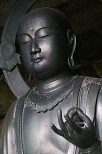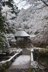 哲学の道より坂を上がり、東山三十六峰の一つ、善気山(ぜんき-さん)麓に法然院(ほうねん-いん)はある。境内、庭に椿が多いことから、「椿の寺」とも呼ばれている。山号は善気山(ぜんき-ざん)、寺号は萬無教寺(ばんぶきょう-じ/まんむきょう-じ、萬無寺)という。現在は獅子谷(ししがたに)法然院と称している。 かつて浄土宗鎮西派、現在は浄土宗捨世派本山。本尊は浄教寺の旧本尊の阿弥陀如来坐像を安置する。 ◆歴史年表 創建の詳細、変遷は不明。 鎌倉時代、1206年、法然と弟子・安楽、住蓮らは、鹿ヶ谷(如意ヶ嶽東南)の草庵で六時礼讃(ろくじらいさん)行を修したという。早朝より日に6度の阿弥陀如来礼讃という、善導の偈頌(げじゅ、教理を説く詩)を朗誦した。 その後、専修念仏への弾圧が続き、草庵は荒廃する。村人(道心者)により村中(鹿ヶ谷村)に移され、草庵は守られたという。 また、いつの頃か、残された仏像を仏堂に安置し、やがて箱に納められ保管された。その後、霊像は、念古という道心者により奉安される。後に仏堂は鹿ヶ谷村の総堂になったという。 江戸時代、寛永年間(1624-1643)/1628年、京極浄教寺住持・導念(道然)は、法然の旧跡を探しあて、この地に閑居した。法然を偲び草庵を結んで法然院と名付けた。また、浄教寺の阿弥陀仏を遷し、法然院としたという。(『山城名跡誌』) その後、草庵は再び荒廃する。 1680年、知恩院第38世・萬無心阿(ばんむ しんあ)は、祇園社に割いた知恩院替地として、法然ゆかりの地を得て念仏道場建立を発願する。般舟三昧の道場、浄土律院に改めたという。(『東西歴覧記』) 萬無心阿の弟子・2世・忍澂(にんちょう、1645-1711)により再興され、開山は法然、中興開山は萬無とした。(『東西歴覧記』)。忍澂が実質的な開山になる。諸堂が造営された。忍澂は、中国廬山(ろざん)に開かれた、東晋の僧・慧遠(えおん)により建てられた東林寺の白蓮社の寺風を慕い寺基を定めた。江戸時代には、無本寺(本寺を持たない独立寺院)になり、朱印地30石を得た。 4代将軍・徳川家綱(在職:1651-1680)により、境内地2000坪の寄進があった。 1681年、本堂が建立されている。 1687年、第111代・後西天皇皇女・誠子内親王の姫御殿(八百宮御殿、伏見城遺構)が移築され、方丈になった。その後、伽藍が整えられる。 1703年、幕命により、善気山、多頂山が寺地として寄進され、境内東西40間、南北50間、寺領30石になる。(「京都御役所向大概覚書」) 1706年-1710年、一切経の校訂が続けられる。 近代、1902年-1906年、『大日本校訂蔵経(卍蔵経)』が刊行される。 現代、1953年、浄土宗より独立し、宗派組織に属さない単立宗教法人になった。 1985年以降、「法然院森の教室」が開かれている。 1993年、共生き堂が竣工する。 2018年、9月、台風21号により境内、周辺の森での倒木被害が相次ぐ。 2019年、参道にガラスアートの枯山水「つながる」が作庭された。 ◆法然 平安時代後期-鎌倉時代前期の浄土宗の僧・法然(ほうねん、1133-1212)。男性。諱は源空、勅諡は円光大師、明照大師、通称は黒谷上人、吉水上人、幼名は勢至丸。美作国(岡山県)の生まれ。父・押領使・漆間時国、母・秦氏。1141年、9歳の時、父は夜襲により目前で殺される。父は出家を遺言する。天台宗菩提寺の叔父・観覚のもとに預けられた。1145年、13歳で比叡山に上り、西塔北谷の持法(宝)房源光に師事した。1147年、皇円の下で出家受戒する。1150年、西塔黒谷慈眼坊叡空の庵室に入り、浄土宗に傾く。法然房源空と名乗る。1156年、比叡山を下り清凉寺に参籠し、南都学匠も歴訪する。再び比叡山に戻り、黒谷報恩蔵で20年に渡り一切経を5回読む。1175年、唐の浄土宗の祖・善導の「観無量寿経疏」の称名念仏を知り、比叡山を下りた。善導は、阿弥陀仏の誓った本願を信じ、ひたすら念仏を唱えれば、善人悪人を問わず、阿弥陀仏の力により必ず阿弥陀仏の浄土である極楽に生まれ変わることができるとした。西山、広谷(後の粟生光明寺)の念仏の聖・遊蓮房円照に住した。東山吉水に草庵(吉水の善坊)に移り、阿弥陀仏を崇拝し、ひたすら南無阿弥陀仏を口で唱える専修念仏の道場になる。1186年/1189年、天台僧らとの大原談義(大原問答)で専修念仏を説く。1190年、東大寺で浄土三部経を講じる。1201年、親鸞が入門した。1204年、延暦寺衆徒による専修念仏停止を天台座主に要請した「元久の法難」が起きる。「七箇条制誡」を定め、弟子190人の連署得て天台座主に提出する。1206年、後鳥羽上皇(第82代)の寵愛した女官(鈴虫、松虫)らが出家した事件「承元(建永)の法難」により、専修念仏の停止(ちょうじ)になり、1207年、法然は四国・讃岐へ流罪になる。10カ月後に赦免されたが入洛は許されず、摂津・勝尾寺に住む。1211年、ようやく帰京した。草庵は荒れ果て、青蓮院の慈円僧正により、大谷の禅房(勢至堂付近)に移る。翌1212年、ここで亡くなった。『選択本願念仏集』(1198)、『一枚起草文』(1212)などを著す。80歳。 法然の専修念仏とは、誰も