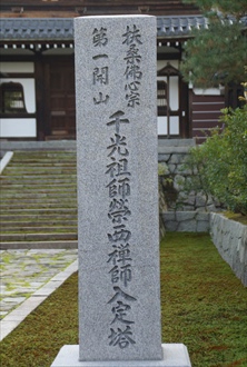 建仁寺境内の西に、建仁寺開山・栄西を祀る塔頭・開山堂(かいざん-どう)の楼門が見えている。 塔所は「開山塔」とも呼ばれている。かつて「護国院」、古くは「興禅護国院」といった。現在は、本坊に属し、山内の住職が一年毎の輪番制で勤行する輪番寺院になっている。 境内には楼門、開山堂、客殿、経蔵などが建ち並び、すべて非公開になる。 ◆歴史年表 鎌倉時代、1215年、この地(現在の入定塔)で開山・栄西が入定したといわれている。 室町時代、1442年、祖塔が修造される。 1465年、足利義政の命により、山内の復興のために普光庵の雪巌永崇、全密西堂、恵光蔵主らが高麗に派遣された。 1458年、雪巌らは、金一万貫を得て帰国、建仁寺の三門、僧堂、さらに開山塔、経蔵も修造された。この時、高麗蔵経642函も持ち帰られる。 1480年、祖塔が修造される。 安土・桃山時代、1598年、祖塔が修造される。 江戸時代、1663年、開山塔を修理する。 1664年、開山塔の修造がされ、新彫の祖像の開眼法要が行われる。 1713年、祖師像新彫安座点眼法要が執り行われる。 1754年、北?道爾が祖塔を重修する。 1837年、宝蔵が焼失し高麗蔵経の大半が失われる。 1850年、鎌倉・寿福寺は、祖塔再建のために本山、塔頭に100両を寄進する。 近代、1877年、妙心寺・玉龍院客殿を移築し現在の客殿にする。 1884年、現在の開山堂が建立された。鳴滝・妙光寺の門を移築し現在の楼門とした。 現代、2011年-2014年、楼門の半解体修理が行われる。 ◆栄西 平安時代後期-鎌倉時代前期の臨済宗の僧・栄西(えいさい/ようさい、1141-1215)。男性。俗姓は賀陽(かや)、幼名は千寿丸、別称は葉上房、千光(せんこう)祖師。備中(岡山県)の吉備津神社の社家・賀陽(かや)氏に生まれた。天台宗の安養寺の静心につく。1153年、13歳で比叡山に上り、1154年、出家し栄西と称した。1157年、法兄・千命により密教を学ぶ。1159年、比叡山北谷八尾の竹林房、顕教の有弁に学ぶ。比叡山を下り、1167年、故郷の安養寺で灌頂を受け、備前・金山寺、日応寺、伯耆の大山寺で行を行う。1168年、宋船で宋に半年間留学し、天台山、阿育王山で臨在禅に触れる。現地で東大寺の重源と遭う。台密葉上流を開く。1175年より、今津の誓願寺に住した。1185年、第82代・後鳥羽天皇の勅により神泉苑で祈雨修法を行う。葉上の号を贈られる。1187年、再び南宋に入宋するが、念願したインド行きはかなわなかった。天台山、天童山に入り、大蔵経を3度読破する。臨済宗黄竜派、万年寺の虚庵懐敞に禅を学び、印可を得た。1191年、帰国し臨済宗を開宗した。1192年、筑前に報恩寺を建てた。平戸の庵(後の千光院)で日本初の臨在禅(禅規)を行う。1194年、栄西、達磨宗の大日能忍らは、延暦寺衆僧により、禅宗弘法を禁じられた。やむなく、1195年、日本初の禅寺・聖福寺を博多に建立した。臨済禅は公家に拮抗する鎌倉幕府、2代将軍・源頼家に信を得る。1199年頃、鎌倉に移る。1200年、北条政子発願により鎌倉・寿福寺を開く。源頼朝一周忌の導師を勤めた。1202年、幕府の外護により建仁寺などを建立する。重源を継いで、1206年、奈良・東大寺の僧正にも就いた。1208年、法勝寺再建にも関わる。1211年より、宋より帰国した泉涌寺開山・俊芿を建仁寺に招き律学を講じさせた。1213年、権僧正。日本臨済宗千光派の祖。鎌倉の寿福寺で亡くなったとも、建仁寺で亡くなったともいう。75歳。 境内、開山堂に栄西を祀る。建築を学び、『喫茶養生記』(1214)を著し茶を勧めた。門弟2000人、孫弟子1万人にものぼったという。 栄西の禅は、天台僧として禅を末法の教えとし、禅による天台宗の復興を唱えた。戒律自主厳守の斎戒勧進を勧める。『興禅護国論』(1198)では、末法の世で戒律の重要性、最澄が伝えた禅の復興を主張した。人は仏性を本性とするとした。禅は他宗教義を否定するのではなく、天台の摩訶止観を引き継ぐものとし、天台、密教、禅の統合を試みた。 ◆円爾弁円 鎌倉時代前期-中期の臨済宗の僧・円爾弁円(えんに-べんえん、1202-1280)。男性。円爾房、謚号は聖一国師。駿河国(静岡県)の生まれ。久能山の堯弁に天台教学を学ぶ。1219年、園城寺で得度、奈良東大寺で具足戒を受けた。上野国・長楽寺の栄朝から禅を学び、久能山、鎌倉・寿福寺へ移った。1220年、京都へ入り、1223年、園城寺に戻った。1235年、入宋して律、天台、径山万寿寺の臨済宗・無準師範などに臨済宗楊岐派を学ぶ。1241年、帰国、博多に崇福寺、承天寺、肥前に万寿寺などを開山した。1243年、東福寺に招かれている。また、建仁寺に入り、1258年、再興した。1269年、東大寺大勧進職になっている。朝廷、鎌倉幕府の帰依を受けた。第88代・後嵯峨、第89代・後深草、亀山上皇(第90代)に大乗戒を授けた。天皇より与えられた国師号「聖一国師」(1311)はその初例になった。79歳。 宋より多くの仏典、典籍持ち帰るとともに、製粉機械の図を伝え製麺を起こした。杭州径山の茶種を持ち帰り、静岡茶の茶祖とされている。法流は聖