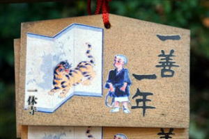 京田辺市、甘南備山(かんなび-やま)麓の薪(たきぎ)に、酬恩庵(しゅうおん-あん)はある。一休寺(いっきゅう-じ)とも呼ばれている。室町時代の「破戒僧」と呼ばれた一休宗純が、晩年の25年間を過ごした寺として知られている。山号は霊瑞山という。 臨済宗大徳寺派、本尊は釈迦如来。 かくれ古寺南山城六山めぐりの一つ、京都南山城古寺の会に参加。「美しき日本-いちどは訪れたい日本の観光遺産」(日本交通公社、1999年)の一つに認定された。 ◆歴史年表 鎌倉時代、正応年間(1288-1293)、大応国師(南浦紹明)が禅道場の霊瑞山妙勝寺を開いたのが始まりという。 元弘の乱(1331-1333)で第96代・後醍醐天皇が挙兵し、その際に焼失し、荒廃した。 室町時代、1429年より、一休は妙勝寺仏殿を再興した。 1456年/1455年-1456年、一休が南浦紹明(大応国師)が開創した霊瑞山妙勝寺を再興した際に、寺の傍らに草庵を結び酬恩庵と名づけたことに始まるともいう。寺号の由来は、「大応国師の師恩に報いる」の意だったという。後に、虎丘庵、寿塔「慈楊塔」が建てられる。 1481年、一休は酬恩庵で亡くなる。 1506年、本堂が建てられた。 1560年、加賀藩第3代藩主・前田利常が伽藍を再興する。 江戸時代、1614年、前田利常により方丈、庫裏が建てられる。 1787年、8塔頭があった。心伝庵、梅渓庵、江庵、待月庵、松屋庵、虎丘庵、黙黙寺になる。 近代以前まで、酬恩庵と呼ばれ、その後、一休寺の通称が普及した。 1871年、「薪騒動」が起こる。 現代、2007年、NPO法人「一休酬恩会」は、周辺の宅地開発に伴う景観保全の立場から署名活動を行い、市、市議会へ提出した。 2010年、一休酬恩会による宅地開発許可取り消しを求めた府開発審査会への申し入れは却下、棄却された。以後、裏山買い取りのナショナルトラスト運動が進められている。 ◆南浦 紹明 鎌倉時代中期-後期の臨済宗の僧・南浦 紹明(なんぽ-じょうみょう、1235-1308)。男性。俗姓は藤原、諡号は円通大応国師。駿河(静岡県)の生まれ。建穂寺の浄辨に天台宗を学ぶ。1249年、15歳で剃髪受戒し、鎌倉・建長寺の蘭渓道隆に師事する。1259年、入宋、杭州・浄慈寺の虚堂智愚に学び後に法嗣になった。1265年、虚堂に従い径山・万寿寺に移る。1267年、帰国し、建長寺の蘭渓に参じ蔵主になり、1270年、筑前・興徳寺、1272年、太宰府・崇福寺に移り、1304年、後宇多法皇(第91代)の詔により上洛し、洛西安井・韜光庵(とうこうあん)に住した。1305年、東山・万寿寺に入る。法皇による東山・嘉元寺開山は成らなかった。1307年、北条時貞の帰依により建長寺に入る。74歳。 塔所は鎌倉・天源塔、筑前・崇福寺の瑞雲塔、京都安井・龍翔寺にある。 門弟多く、臨済禅大応派の祖。没後、1309年、後宇多法皇に贈らた国師号「円通大応国師」は日本初例になる。 ◆一休 室町時代前期-後期の臨済宗大徳寺派の僧・一休(いっきゅう、1394-1481)。男性。幼名は周建、諱は宗純(そうじゅん)、号は狂雲子、夢閨、天下老和尚。京都の生まれ。父・北朝第6代・第100代・後小松天皇の落胤(第一皇子)、母・公卿花山院某娘は後宮を追われ嵯峨野の民家で一休を産んだという。1399年、6歳で京都の安国寺・像外集鑑に随い周建(しゅうけん)と名付けられる。1405年、嵯峨・宝幢寺の清叟師仁、1406年、建仁寺に移り、霊泉院の慕哲竜攀に詩を学ぶ。1409年、建仁寺を脱する。壬生の清叟に随う。1410年、17歳の時、西金寺(さいこんじ)・謙翁宗為(けんおう-そうい)の弟子になり宗純と改める。1414年、師を失い大津瀬田川で自殺未遂の後、1415年、近江・祥瑞庵の華叟宗曇(かそう-そうどん)の弟子になり、1418年、一休(有漏路より無漏路の一休み)の号を授けられた。1420年、大悟し印可を受ける。1422年頃より、風狂と呼ばれた。1428年、師・宗曇没後、近畿一円を放浪する。1440年、請われて大徳寺・如意庵に入るが10日後に去る。1442年、謙(譲)羽山に尸陀寺(しだじ)を創建した。1447年、大徳寺の抗争を嫌い謙羽山に入り、断食により自死をはかる。1448年、売扇庵に寓し、1451年頃、兄弟子・養叟と対立する。1452年、瞎驢庵(かつろあん)に移る。酬恩庵を始める。1456年、山城薪に妙勝庵を復した。1459年、徳禅寺住持、1461年、安井・竜翔寺を興す。1462年、病になり桂林寺に移り、1463年、賀茂・大燈寺、瞎驢庵に移る。応仁・文明の乱(1467-1477)で瞎驢庵が焼失し各所転々とする。1469年、大和、和泉、摂津住吉などに移る。1472年(1470年/1471年とも)、住吉大社薬師堂で見初めた旅芸人の盲目・森女(しんじょ)を1473年より、酬恩庵隠寮に引き取り住まわせた。1474年、第103代・後土御門天皇の勅命により、81歳で大徳寺第48代として再興した。1475年、東山の虎丘庵を当地に移築している。1478年、妙勝庵に再住した。1481年、酬恩庵で亡くなり、寿塔「慈楊塔」に葬られた。1491年、大徳寺・真珠庵にも分塔される。著『狂雲集』。88歳。 一休は権威を嫌い「風狂の聖」と呼ばれた。一休は、詩人としても知られ、詩集『狂雲集』がある。茶道、能楽、詩、狂