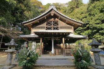 長岡京市の西にある小社の走田神社(はしりた じんじゃ)は、石段を昇りきった山腹の森に建つ。乙訓十九座の一つに数えられている。 祭神は、春日社に武甕槌神(たけみかづちのかみ)、経津主神(ふつぬしのかみ)、天児屋根命(あめのこやねのみこと)、姫大神(ひめのおおかみ)を祀る。旧村社。 五穀豊穣を祈願する農耕神として崇敬された。 ◆歴史年表 創建、変遷の詳細は不明。 かつて、妙見社、妙見菩薩神社と呼ばれていたともいう。周辺の長法寺村、奥海印寺村の産土神として祀られていた。寂照院の鎮守社だったともいう。 近世(安土・桃山時代-江戸時代)、海印寺の神宮寺になり妙見社と称された。 近代、1868年、神仏分離令後の廃仏毀釈により、合祀されていた妙見菩薩が寂照院に遷されている。同年まで、小倉神社(円明寺村)の神輿が当社まで渡御していた。 1877年、式内に比定され、走田神社と改称した。 ◆走田 走田(はしりた)とは、神嘗祭(かんなめさい)の祭祀に用いる初穂(はつほ、走りの穂)をつくる田を意味した。早稲田(わせだ、早田)の守護神という。 ◆末社 春日社(武甕槌神、経津主神、天児屋根命、姫大神)、熊野神社(伊弉諾尊、天児屋根命)、稲荷神社(倉稲魂命)、蛭子社(事代主命)を祀る。 ◆建築 本殿、拝殿、社務所などがある。 「本殿」は覆屋になっている。能舞台がある。一間社、春日造、向拝付、檜皮葺。 ◆海印寺 海印寺は、当社の神宮寺だったという。真言密教と妙見信仰が結び付き、当社は、寺の海印寺の奥の院に位置付けられたともいう。 ◆走田古墳群 走田神社から寂照院にかけての南斜面に、古墳時代後期末の走田古墳群がある。8-10号墳のうち、9号墳(寂照院本堂背後)の横穴式石室には、玄室内に組合せ式家形石棺の部材が保存されている。 ◆年間行事 歳旦祭(1月1日)、お千度祭 (勧請縄、弓講代表の高橋家が的射矢の神事を行う。)(1月13日)、祈年祭(3月中旬)、お千度祭(6月中旬)、例祭(10月21日)、秋季大祭(11月14日)、新嘗祭・火焚祭(11月28日)、除夜祭・除夜祭(12月31日)、月次祭(毎月1日)。 *年間行事は中止・日時・内容変更の場合があります。 *年号は原則として西暦を、近代以前の月日は旧暦を使用しています。 *参考文献 『京都・山城寺院神社大事典』『昭和京都名所図会 6 洛南』『京都おとくに歴史を歩く』『水無瀬神宮と周辺の史跡』 ![]() ![]() ![]() ![]() ![]() |