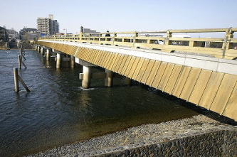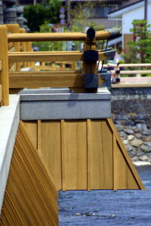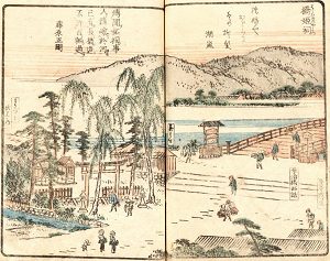 ![]() ![]() 橋姫神社 ![]() ![]() 摂社・住吉社、『源平盛衰記』には、「平等院の北東の方結の神の後より武者二騎…」とあるという。 ![]() ![]() 宇治橋 ![]() 旧宇治橋の「三の間」、宇治橋右岸 ![]() 現在の宇治橋の「三の間」 ![]() 「三の間」、川上に迫り出している。かつて橋姫(はしひめ)神社はここに祀られていた。 ![]() 近くにある宇治七名水の一つ「公文水」 ![]() 江戸時代の『宇治川両岸一覽』に描かれた「橋姫祠」(左半分)、宇治川、宇治橋西詰(右手)(ROIS-DS人文学オープンデータ共同利用センター) |