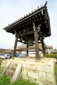 ◆梵鐘 鐘楼の「梵鐘」は、かつて摂津・法安寺(生玉大明神/ 生国魂大明神)にあった。豊臣秀吉の次男・秀頼(1593-1615)が片桐且元に命じ、社殿修造、鋳造したという。梵鐘には、江戸時代前期、「慶長十一年(1606年)」の銘がある。鐘名に豊臣秀頼(1593-1615)、淀殿(1566/1569-1615)、加藤清正(1562-1611)、勝元の名が刻まれているという。銅鐘、四方に撞座、108個の乳を配している。