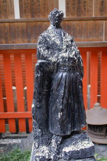 岬神社(みさき-じんじゃ)は、御先神社、土佐稲荷(とさいなり)、土佐稲荷岬神社ともいわれる。周辺の産土神として、商家、先斗町などの信仰を集めてきた。 祭神は、倉稻魂神(うかのみたまのかみ)、猿田彦命(さるたひこのかみ)、大宮乃賣命(おおみやひめのみこと)、これらとゆかりの神を祀る配祀(はいし)は石栄神社になる。 縁結び、厄払いの信仰がある。戦前までは、花街の篤い信仰を集めていた。 ◆歴史年表 南北朝時代、1348年以前、鴨川の中州岬に祠を建て、岬神社と称されたという。(『坊目誌』) その後、神祠は鴨川の西岸に遷されている。 安土・桃山-江戸時代、慶長年間(1596-1614)、土地は土佐藩に下賜され、社殿も取り込まれ、備前島町の土佐藩京屋敷内に遷座された。 江戸時代、坂本龍馬(1835-1867)もよく参拝していたという。 近代、1877年、土佐藩の廃藩にともない社殿も荒廃した。稲荷を土佐に遷座させようとしたところ、載せた船が大荒れに遭い、再び戻されたという。 1885年/1887年頃、一時、南の下大阪町(中京区)に無格社として再興される。 1911年、現在地に再移転した。初代・近江屋新助ら地元有力者が土佐藩用人官舎地を買い取り、遷座したという。 1911年-1913年、社殿は改修された。 1913年、社殿が完成する。 ◆坂本龍馬 江戸時代後期の尊攘派志士・坂本龍馬(さかもと-りょうま、1835-1867)。男性。本名は直陰、直柔(なおなり)、別名は才谷(さいだに)梅太郎、通称は龍馬。土佐(高知県)の生まれ。土佐藩郷士・坂本長兵衛の次男。城下築屋敷(つきやしき)の日根野(ひねの)弁治道場で小栗流剣術を修行した。1853年、旧3月、江戸・北辰一刀流千葉定吉道場に剣術修行に出る。1854年、土佐で画家・河田小龍から西洋事情を学ぶ。1856年、旧8月、再び千葉道場に遊学し免許を得た。この頃、江戸で武市瑞山、久坂玄瑞らを知り、尊攘運動に入る。1858年、旧9月、帰国した。1861年、旧8月、武市らが結成した「土佐勤王党」に加盟し、出国する。1862年、旧1月、長州萩に久坂を訪ね、3月、脱藩した。大坂、京都を経て江戸に出る。軍艦奉行・勝海舟の弟子になり、航海術などを学ぶ。1863年、旧2月、勝の尽力により脱藩罪を赦免される。旧12月、土佐藩の召喚令に従わず、再び脱藩の身になった。1864年、勝の主唱した「神戸海軍操練所」設立に尽力し、塾頭になる。旧4月、肥前国に横井小楠を訪ねる。旧10月、勝の失脚後に操練所は解散になる。龍馬は薩摩藩の保護を受けた。1865年、旧5月、大宰府で三条実美ら5卿に薩長同盟を説く。旧閏5月、薩摩藩の援助の下で、長崎で株式会社の先駆・政治結社「亀山社中」を設立した。洋式銃砲の取り引きを行なう。1866年、土佐藩は長崎に貿易のための「土佐商会」を設立した。旧1月21日(新暦3月7日)、京都で龍馬は中岡慎太郎と協力し、対立していた長州藩・薩摩藩間の「薩長同盟」に尽力した。倒幕への布石になる。旧1月24日(新暦3月10日)、龍馬は伏見の旅館「寺田屋」で幕史に襲われる。寺田屋養女・お龍、大山彦八、三吉慎蔵らの機転で難を免れた。(寺田屋事件)。旧6月、第二次長州征討(四境戦争)で、「丑乙丸」を操り参戦した。1867年、旧1月、長崎の「土佐商会」に出張の藩参政・後藤象二郎と会談した。土佐藩は藩主・山内容堂の公武合体路線の行き詰まりから方向転換を求めていた。旧 4月、藩は龍馬の脱藩の罪を許した。亀山社中を「海援隊」に改め、海援隊長になる。紀州藩との「いろは丸事件」を解決する。旧5月、京都で「薩土密約(薩土討幕の密約)」の締結に立ち会う。旧6月、長崎からの藩船中で、後藤と大政奉還・公議政治などを原案にする新国家構想「船中八策」を策定した。京都で薩摩の西郷隆盛らとの間の「薩土盟約」に立ち会う。(10月破棄)。旧10月、土佐藩主・山内は「船中八策」案を元に、将軍・徳川慶喜に大政奉還を建白し、旧10月14日(新暦11月9日)、朝廷も許可し実現した。その後、龍馬は土佐、長崎、福井などに移る。旧11月15日(新暦12月10日)夜、京都「近江屋」で中岡とともに暗殺された。幕府見廻組刺客の手によるともいう。(近江屋事件)。32歳。 1869年、正四位追贈。松平春嶽、横井小楠、三岡八郎(由利公正)、大久保一翁(忠寛)、西郷隆盛らと親交した。墓は霊山墓地(東山区)にある。 ◆創建時の社 南北朝時代、1348年以前に、鴨川中州に備前国西大寺村の新右衛門という人が移り住んだ。当時の川原は広く、中州の岬に祠を建て「岬神社」と称したという。諸業繁栄福利、火除、土工建築修工守護しなどの神託があり、福狐1万個を参詣人に頒けたともいう。(『坊目誌』) その後、神祠は鴨川の西岸に遷される。 安土・桃山-江戸時代、慶長年間(1596-1614)に、土地は土佐藩に下賜された。社殿も取り込まれ、備前島町の土佐藩京屋敷内に遷座された。この時、倉稲魂命、石栄神の二座を祭神とし、以来、「土佐稲荷」、「岬神社」とも称された。藩邸は、蛸薬師橋東のたもとを東北の端として、旧立誠小付近を含む、西へ100m、南へ60mの敷地があっ