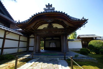 妙心寺塔頭の隣華院(りんか-いん)は、境内北西、北門からわずかに南へ下ったところにある。「人形供養寺」とも呼ばれている。 臨済宗妙心寺派。 ◆歴史年表 安土・桃山時代、1599年、妙心寺58世・南化玄興(なんか-げんこう)の開山、脇坂安治の開基による。旧6月4日、安治は亡き父・安明の33回忌法要を営み、その法名「隣華院殿陽春聯芳大禅定門」に因み「隣華院」とした。また、寺地が北門外にあったため、華園(妙心寺)に隣接するとして称されたともいう。玄興の退隠所になる。長谷川等伯は障壁画を描く。 1604年、玄興の没後、安治の3男・定水玄済(あんさい-じょうすい)が2世になり住持を継ぐ。以来、脇坂家縁者が住持になり、香華所(菩提所)になった。 また、江戸時代、文化・文政年間(1804-1830)、脇坂安菫・安宅(やすおり)父子が再建する。脇坂家の菩提所になったともいう。 1820年-1832年、9世・江山祖成の大願を引き継いだ、10世・南海玄等によリ大改修が進められた。 1824年、現在の客殿(方丈)が建てられたとみられている。この頃、表門の重修、大玄関の再造などが行われている。 ◆南化 玄興 室町時代後期-江戸時代前期の臨済宗の僧・南化 玄興(なんか-げんこう、1538-1604)。男性。号は虚白、姓は一柳、諡号は定慧円明国師。美濃(岐阜県)の生まれ。邦叔宗禎、快川紹喜に師事する。1570年、33歳で妙心寺58世になる。その後、4度住持を務めた。美濃・瑞竜寺、尾張・妙興寺を復興する。1591年、豊臣秀吉は、3歳で死去した愛児・鶴松(棄丸)の菩提のために、南化を開山に招いて祥雲寺を建立している。67歳。 第107代・後陽成天皇、武将・大名で、豊臣政権の五大老の一人・上杉景勝(1556-1623)、上杉謙信、豊臣秀吉に仕えた武将・大名の直江兼続(1560-1619)らが帰依した。武将・一柳直末は、南化を開山とし、妙心寺内に大通院を創建している。 墓は妙心寺・隣華院(右京区)にある。 ◆脇坂 安治 室町時代後期-江戸時代前期の武将・脇坂 安治(わきさか-やすはる、1554-1626)。男性。通称は甚内。近江国(滋賀県)の生まれ。脇坂安明の嗣子になる。1569年、丹波国・黒井城攻めにより、羽柴秀吉に謁見し食禄を与えられる。1570年、石山本願寺の一揆で、織田信長の支援に坂本向かった秀吉の兵糧支援を担う。安治は留守部隊の軍令違反を犯して駆け付けていた。姉川の戦い、1578年-1580年、播磨国・三木城の戦にも加わる。その際に、1578年、立てこもった別所長治を攻めた。安治はその功により、秀吉から輪違を描いた赤幌(母衣)を与えられ、家紋「輪違」の由来になった。1583年、賤ヶ岳の戦いでは、「七本槍(ほかに福島正則、加藤清正、加藤嘉明、平野長泰、糟屋武則、片桐且元)」の一人として戦功をあげた。1584年、小牧・長久手の戦いで伊賀上野城を攻め落とした。1585年、秀吉により従五位下・中務少輔に叙され、摂津国能勢郡、大和国高取城、淡路国洲本城に転じた。1590年、小田原討伐で水軍を率い、伊豆下田城を攻めた。朝鮮を攻めた文禄・慶長の役(1592-1593・1597-1598)で、水軍1500を率い、兵站・交戦した。1600年、関ヶ原の戦では、小早川秀秋配下で西軍から東軍に寝返る。戦後、家康より所領安堵、1609年、加増、移封され、伊予国大洲城主になる。1614年、大坂冬の陣で豊臣家に配慮し、家督を子・安本に譲り隠居した。1617年、独り京都に移る。73歳。 和漢に通じ、和歌を嗜んだ。墓は妙心寺・隣華院(右京区)にある。 ◆定水 玄済 安土・桃山時代-江戸時代前期の臨済宗の僧・定水 玄済(じょうすい-げんさい、?-?)。詳細不明。男性。安済(あんさい)?。脇坂安治の3男。南化玄興の法嗣。1604年、隣華院2世になる。 以後、南化・安治以下歴代の供養を続けた。 ◆長谷川 等伯 室町時代前期-江戸時代前期の画家・長谷川 等伯(はせがわ-とうはく、1539-1610)。男性。名は又四郎、のち帯刀(たてわき)。初めの号は信春。長谷川派の祖。能登(石川県)畠山家家臣・奥村家に生まれた。染め物屋を営む長谷川宗清の養子になる。義父から絵を教わる。雪舟門弟・等春の弟子・宗清に学び、1564年、信春(しんしゅん)と称し、熱心な法華信徒として仏画「十二天像」を描く。1571年、本法寺を頼り妻・妙浄、子・久蔵と共に上洛、狩野永徳に入門するが 後に出る。千利休、本法寺10世・日通、大徳寺・春屋宗園らと親交を結ぶ。1589年、大徳寺三門障壁画、塔頭・三玄院障壁画を制作する。この三玄院事件により世に認められ、長谷川派は狩野派に拮抗した。1590年、京都所司代・前田玄以は、仙洞御所対屋障壁画を等伯に描かせようとする。だが、永徳は勧修寺晴豊によりこれを覆した。1590年、その永徳は急逝する。1591年、等伯は秀吉が愛息を弔うために建てた祥雲寺障壁画を手掛け、派を確立した。1599年、亡き子・久蔵菩提のために「仏涅槃図」を完成させる。「自雪舟五代」と署し、雪舟画系であるとした。1604年、法眼に就く。1610年、家康に招かれ江戸に着き亡くなる。72歳。 ◆狩野 永岳 江戸時代後期の画家・狩野 永岳(かのう-えいがく、1790