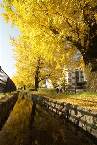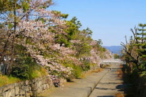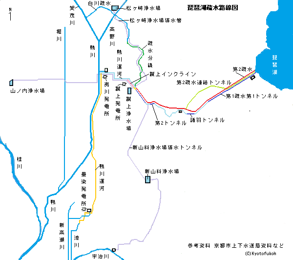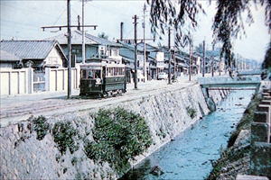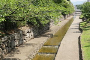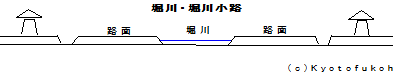 堀川(ほりかわ、全長8.2km)は、堀河とも記された。平安京左京二坊に南北に流れていた運河をいう。現在の堀川通は、平安京の堀川小路に重なる。なお、右京にも堀川に対になる形で西堀川が流れていた。 かつて、川岸には材木商が集まり、中世以降は染織業者も川筋に現れた。現在も周辺には、丸太町、木津屋橋、椹木町などの地名が残されている。 ◆歴史年表 平安時代、799年、第50代・桓武天皇は視察の折に、囚人の労働が過酷であるとして恩赦の詔を発している。(『日本後紀』)。運河である堀川は、囚人の労働によって造られた。 平安時代、平安京の造営のための木材運搬が行われた。西国の材は、丹波から、淀川を経て堀川を上っていた。「西の堀川」(西堀川、紙屋川とその南の流れ)と対をなし、堀川は「東堀川」といわれた。堀川の両側に、ほぼ同じ幅の道が通じ、この堀川小路には、高陽院、冷泉院、二条院、堀河院などの大邸宅が建ち並び、邸内に堀川の水を引き入れていた。(『類聚三代挌』) 866年、干ばつの際に、人々は堀川の鮎を採り食したという。(『三代実録』) 平安時代中期、「西の堀川」が廃れた。 中世(鎌倉時代-室町時代)、堀川には船橋といわれる船を並べその上に板を渡した簡単な橋が架かっていた。上立売堀川のものは水落寺が管理した。今出川堀川にもあった。祇園社の堀川十二町の堀川神人が、川筋を特許の貯木場にしていた。中世以降、染織業者も川筋に現れる。 中世末(室町時代)、堀川の水上面にも町家が建てられてる。 戦国時代、堀川は、最外郭の堀としても機能する。 近世(安土・桃山時代-江戸時代)、堀川は下流の村々の灌漑用水としても機能した。ただ、水量が少ないため、井堰や分水を巡って水争いが頻発する。近世以降は染色業も現れた。 安土・桃山時代、1601年以来、二条城の築営の際にも、堀川を利用して用材が運び込まれる。 江戸時代、堀川の岸では菜園で野菜を作り、植木、小屋まで建てる事態になっていた。 1778年、堀川や鴨川での洪水で被害が出た。京都町奉行所は堀川一条から二条にかけて、川岸での耕作などを禁じるお触れを出す。 1830年、旧7月、京都大地震(文政の大地震) で、一条戻橋が半分崩壊、一条堀川の蕎麦屋が堀川に崩れ落ち、客6人が即死した。(『京都地震実録』『甲子夜話』『宝暦現来集』) 近代、明治期(1868-1912)、友禅染、農業用水としても使われた。 1873年、京都府により石造アーチ橋の中立売橋が架け替えられる。 1890年、琵琶湖疏水の完成後、疏水分線は、高野川、鴨川の底を通り、堀川に合流していた。桜並木のあった疏水は現在の紫明通になる。 1920年、9月11日、堀川埋立阻止のため沿岸住民は、堀川保存期成同盟会を結成した。(「京都日出新聞」) 1932年-1934年、旧内務省による改修工事が行われ、それまでの天神川から鴨川へ合流するようになった。 1935年、改修後の「昭和十年鴨川大洪水」の際にも、小川筋での浸水はあったが、堀川筋での被害は出なかった。 太平洋戦争中(1941-1945)、堀川の両岸の家々は、強制疎開により取り壊された。 現代、1953年、琵琶湖疏水からの流水が断たれ、堀川の流れは枯渇する。 1967年、京都市による堀川の暗渠化、堀川通の拡張計画が公表された。歴史的な河川が消えることに対して反対運動が起こり、計画は一部暗渠化に変更され実行された。 2007年、旧城巽中(中京区)の発掘調査により、安土・桃山時代後期-江戸時代初期の舟入落ち込みの遺構が発見された。 1997年-2008年、京都市による「堀川水辺環境整備事業」が行われる。 2001年、堀川通中央分離帯の0イチョウ、ユリノキは「上京区民の誇りの木」に選ばれた。 2009年より、第2琵琶湖疏水分線の水が通され、堀川の流れが復活した。 ◆堀川 平安時代、朱雀大路を中心に左右対称の位置に、「西の堀川」(西堀川)、「東の堀川」(東堀川)という二つの堀川があった。 西の堀川は、現在の天神川(紙屋川)付近を南北に流れていた。紙屋川より水を引き入れていた。幾度も氾濫し、修復を繰り返している。その後、西の堀川の流路が変わり、平安時代中期にはすでに廃れる。 やがて、東の堀川が堀川と呼ばれるようになり、中世以後も運河として利用された。 平安時代、堀川の両側に、ほぼ同じ幅の道が通じていた。この堀川小路には、高陽院、冷泉院、堀河院などの大邸宅が建ち並び、邸内に堀川の水を引き入れていた。 堀川は、川幅が8丈あり、平安時代以来、材木の輸送に使われていた。西国の材は、丹波から、淀川を経て堀川を上った。鎌倉時代の『一遍上人絵伝』には、七条堀川に材木市が描かれている。室町時代、材木を扱う商人は堀川材木座を組み、堀川は材木の集散地になる。 江戸時代初期の『洛中洛外図』にも、堀川沿いに材木屋が描かれている。祇園社に属した堀川神人が貯木場を管理していた。これは、平安時代、879年に堀川12町の流れを祇園社に寄進して以来のことになる。祇園御霊会の際には、神輿が鴨川渡河するための浮橋