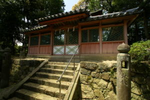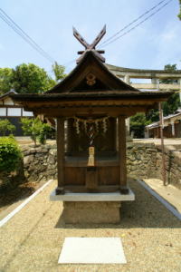 末社・「金比羅社」は、金山比古命・金山比売命を祀る。春日造、1988年に本殿修理の際に仮本殿として建替えた。