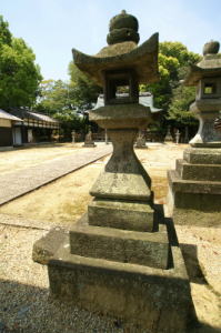 本殿右手の石灯籠は、安土・桃山時代、「天正二年(1574年)」の銘が入る。