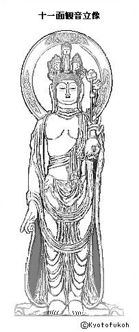 京田辺市普賢寺に、観音寺(かんのん-じ)はある。本堂安置の美仏本尊で知られている。 正式には「大御堂(おおみ-どう)観音寺」という。古くは「普賢寺(ふげん-じ)」、「大御堂」、「筒城(大)寺(つつぎ-でら/つつきおお-でら)」などとも呼ばれた。山号は息長山(そくちょう-ざん)という。 真言宗智山派、本尊は十一面観音。 かくれ古寺南山城六山めぐりの一つ、京都南山城古寺の会。 ◆歴史年表 創建、変遷の詳細は不明。 飛鳥時代、662年、第40代・天武天皇の勅願により、僧・義淵(ぎえん)が創建したという。観心山親山寺(しんざん-じ)が前身になったという。筒城寺とも呼ばれ、本尊は釈迦仏とされた。(寺伝、『普賢寺補略録』『興福寺官務牒疏』) 奈良時代、744年、第45代・聖武天皇の勅願により、東大寺の良弁が伽藍を増築し中興した。息長山普賢教法寺と称したという。大御堂に本尊・丈六観世音、小御堂に普賢菩薩が安置された。(『普賢寺補略録』『興福寺官務牒疏』)。また、この時、丈六の十一面観音を安置したという。(寺伝) その後、実忠が第一世として入寺したという。法相三論華厳などを兼学し、筒城大寺といわれた。 778年、実忠(じっちゅう)は五重塔など建立する。(『普賢寺補略録』『興福寺官務牒疏』) 平安時代、794年、焼失している。(『普賢寺補略録』) 853年、公卿で人臣最初の摂政になった藤原良房を願主として、大導師・円仁により再興された。(『普賢寺補略録』)。以後、藤原氏の氏寺・興福寺別院として、藤原摂関家の外護が続いた。 952年、勅により、奈良興福寺・正昭が再興し、法相宗に改める。(『普賢寺補略録』) 1068年、焼失した。(『普賢寺補略録』) 1095年、公卿・藤原師実により再興された。(『普賢寺補略録』) 1126年、公卿・藤原忠実により一部伽藍(五重大塔、地蔵堂)が再建されている。(『普賢寺補略録』) 1180年、武将・平重衡の軍により焼かれる。衆徒などに死者が出る。(『普賢寺補略録』) 1189年、公卿・藤原基通により再興された。(『普賢寺補略録』) 鎌倉時代、1283年、焼失した。(『普賢寺補略録』) 1279年、大願主の公卿・藤原家基により再建された。子・大乗院実信が大導師になる。(『普賢寺補略録』) 1290年、大乗院尋覚により再興される。(『普賢寺補略録』) 室町時代、1360年、兵火により焼失する。(『普賢寺補略録』) 1383年、武将・畠山家国により再興された。(『普賢寺補略録』) 1437年、30以上の堂宇の大半が焼失した。(『普賢寺補略録』) 1438年、再興される。(『普賢寺補略録』) 1439年、大西志摩守、朱智実好らの勧進により大御堂、小御堂が再建される。(寺伝) 1533年、20以上の僧坊、2つの庵居が描かれている。(『興福寺別院山城国綴喜郡観心山普賢教法寺四至内之図』) 1565年、焼失している。その後、大御堂だけが再建される。(寺伝) 現代、1953年、現在の本堂が建てられる。 ◆義淵 飛鳥時代-奈良時代の法相(ほっそう)宗の僧・義淵(ぎいん/ぎえん、?-728)。男性。俗姓は百済王の子孫・市往(いちき)/阿刀(あと)氏。大和(奈良県)高市郡の生まれ。出家し、元興(がんごう)寺の法相宗第三伝・智鳳(ちほう)に法相・唯識を学ぶ。703年、僧正になる。 伝承として、両親が観音菩薩に祈り授かり柴垣の上に置かれていたという。天智天皇は岡宮で草壁皇子とともに養育したという。 興福寺系法相宗の中心として、弟子に行基、法相宗第四伝・玄昉(げんぼう)、華厳宗を開いた良弁(ろうべん)、宣教、隆尊、道鏡らがいる。岡宮を与えられ寺に改めて竜蓋寺(りゅうがい-じ、岡寺)を開く。ほか竜聞寺、竜福寺、竜泉寺、竜象寺の五箇竜寺の開山になる。天智天皇以後7代の天皇が帰依した。第44代・元正天皇、第45代・聖武天皇の代に宮中の内道場に仕え、その功により市往氏に岡連(おかのむらじ)の姓を賜った。 ◆良弁 奈良時代の僧・良弁(ろうべん、689-774)。男性。相模国(神奈川県)・漆部氏、近江国(滋賀県)・百済氏ともいう。養育された義淵に法相、華厳宗を学んだ。728年、東大寺の前身・金鐘山寺(きんしょうせんじ)に智行僧として選ばれる。735年、藤尾山観音寺の創建、740年、新羅に留学した学僧・審祥(しんしょう)を金鐘寺に招き華厳教学を研究した。751年/752年、少僧都、初代東大寺別当に就いた。来日した鑑真を東大寺で迎える。聖武天皇の看病禅師、その功により756年、大僧都。760年、僧尼位 (三色十三階制)の整備を行う。別当を勇退後、761年、近江・石山寺の造立に尽力し、764年僧正。華厳宗の宗祖。 いくつかの伝承がある。幼少期、金色の大鷲にさらわれ、東大寺二月堂前の大木にかけられたのを義淵に救われ、養育されたという。 ◆実忠 奈良時代-平安時代前期の華厳(けごん)宗の僧・実忠(じっちゅう、726-?)。詳細不明。男性。東大寺の良弁に華厳を学んだ。天平年間(729-749)後半頃、良弁の側近として東大寺の造営などに活躍した。763年-771年、大仏の光背(高さ11丈)を造り、大仏殿の天井を1丈上方に切り上げて光背を立てた。764年、巨大な露盤(高さ8丈3尺)を東塔に据え