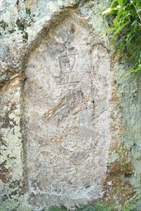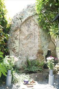 嵯峨中又町(なかまた-ちょう)の下立売通の南、生垣の中に、「安堵の塔(あんど-の-とう)」という石碑が立つ。日蓮の孫弟子・日像ゆかりの題目卒塔婆という。日像の号「竜(龍)華寿院」に因み「ルルゲ(竜華)さん」とも呼ばれている。 災難を避ける功徳があるという。 ◆歴史年表 鎌倉時代、1314年、日像は、車折神社の社頭で、法華経の布教を行った。その時、他宗の迫害があり、近くの兜塚(冑塚、甲塚)古墳に身を隠し難を逃れたという。その後、感謝して題目石塔婆を立てたという。(駒札)。 また、日像が京都七口に立てた石卒塔婆の一つともいう。 ◆日像 鎌倉時代中期-南北朝時代の日蓮宗の僧・日像(にちぞう、1269-1342)。肥後房、肥後阿闍梨、号は竜華寿院という。下総国(千葉県・茨城県)に生まれた。7歳で日蓮の六大弟子の一人・日朗に師事した。1275年、身延の日蓮の弟子になり、経一丸と命名され本尊を授与する。1282年、日蓮没後、日朗に再び師事した。1293年、北陸を経て、1294年、入洛し、日蓮の遺命により日蓮宗最初の京都弘通(ぐつう、布教)、宗義天奏(天皇への布教)を行う。松ヶ崎・歓喜寺(妙泉寺)、洛西・真経寺、深草・極楽寺(宝塔寺)を日蓮宗に改宗させた。柳酒屋仲興(やなぎざかや-なかおき)ら町衆に信徒拡大し、一時の京都は「法華題目の巷」と呼ばれた。1307年頃、乙訓山崎付近で布教を行う。比叡山延暦寺などの圧力により、1307年、土佐配流、1308年、紀伊流罪になる。1311年、綾小路大宮(下京区)付近に、拠点の法華堂が建立されたとみられている。妙顕寺を開創し、教団発展の礎を築く。1321年、第96代・後醍醐天皇より弘通の勅許を得る。今小路に法華堂を移し、妙顕寺の起源ともいう。京都での日蓮宗最初の道場になる。同年、洛内追放になる。3度の弾圧と赦免「三黜三赦(さんちつさんしゃ)の法難」を受けた。著『秘蔵集』など。74歳。深草・宝塔寺に葬られる。 一門は四条にあり、四条門流と呼ばれた。1358年、弟子・大覚の祈雨の功により菩薩号が贈られた。 ◆安堵の塔 ◈ 鎌倉時代、1314年の春、日像が車折神社(右京区)の社頭で、法華経の布教を行った。その時、他宗の迫害を受けた。近くの兜塚(冑塚、甲塚)古墳に身を隠し、難を逃れる。その後、感謝し、古墳の石蓋に波動(なみのり)の題目を刻んで立てたという。 高さ220㎝、幅150㎝、厚さ95㎝。 ◈ また、日像が京都七口に立てた石卒塔婆の一つという。表面に「南無妙法蓮華経」と刻んでいる。 ◈ なお、碑の東に流れている有栖(ありす)川には、かつて「安堵橋(あんどばし)」が架けられていた。現在は「甲塚橋(かぶとづかばし)」と呼ばれている。 この「安堵」とは、空海にまつわる「阿刀(あと、阿刀氏)」よりの転訛ともいう。かつて、嵯峨・清凉寺で火災があり、比叡山衆徒が駆け付けた。橋の袂で宝樹寺の本尊が無事であり、安堵したことから名付けられたという。(『都名所図会』巻4)。 ◆冑塚古墳 「冑塚古墳(かぶとづか こふん)」(右京区嵯峨甲塚町)は、安堵の塔の南東に位置している。民家敷地内にあり、「兜塚」「甲塚」とも記される。 平地に築かれた円墳で、後期古墳、横穴式になる。南を正面にし、側面から見ると冑の形をしており、名の由来になった。封土は崩れている。羨道、玄室は残る。径38m、高さ5.5m。 現在は、稲荷神を祀る祠がある。 *年号は原則として西暦を、近代以前の月日は旧暦を使用しています。 *参考文献・資料 駒札、『昭和京都名所図会 4 洛西』、ウェブサイト「コトバンク」 ![]() ![]() ![]() ![]() ![]() ![]() ![]() |