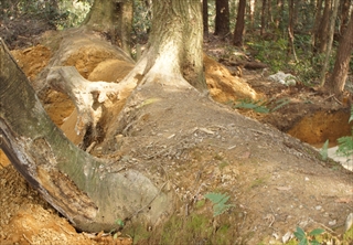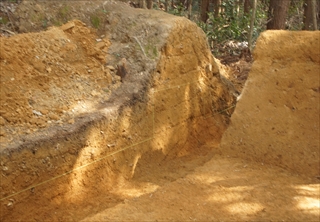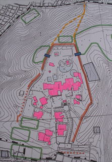![]() 松殿山荘 ![]() ![]() ![]() ![]() ![]() 敷地北東の土塁 ![]() 土塁の断面 ![]() 敷地北西の土塁遺構の断面 ![]() ピンクの部分が現在の建物群、茶色線の部分が土塁遺構。上の青い四角部分の土塁2か所が発掘された。 ![]() 敷地内にある「松」の字を記した杭 ![]() 敷地内の宇治陵 ![]() 北西には、小規模の宇治陵、32号墳、33号墳が遺されている。 ![]() 宇治陵33号墳、道元母・藤原(松殿)伊子の墓ともいう。 ![]() 宇治陵32号墳 ![]() 近くの茶畑 ![]() 【参照】平安時代、1005年に藤原道長が一門の菩提のために建立した頂妙寺跡(木幡小学校内)。 |