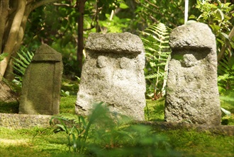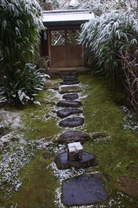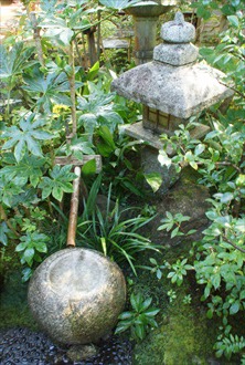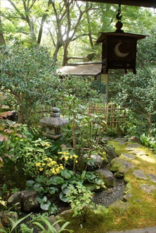 法然院境内の南西一角、傾斜地に石垣を築き金毛院(きんもう-いん)は建つ。山号を獅子山という。法然院の別行道場(塔頭)になる。 浄土宗、本尊は阿弥陀如来坐像。 ◆歴史年表 創建の詳細、変遷は不明。 江戸時代中期、1693年?、法然院の忍澂(1645-1711)の退隠所として開かれたという。 ◆忍澂 江戸時代前期-中期の浄土宗の僧・忍澂(にんちょう、1645-1711)。男性。俗姓は二見、号は白蓮社宣誉信阿、葵翁、金毛老人。江戸の生まれ。幼くして両親を失い、姉に育てられた。父の遺言に従い、江戸・増上寺・最勝院の直伝(じきでん)により11歳で出家、師没後、浄国寺・萬無(まんむ)、増上寺・林冏(りんげい)に学ぶ。各所で修行を重ね、1676年、安孫子・浄福寺で自誓受戒する。萬無は忍澂に命じ、1681年、鹿ヶ谷に法然院を建立し念仏道場とした。萬無没後、規則「白蓮小清規」を定めた。一切経『大蔵経』(1706-1710)の校訂を行う。1693年、金毛院に退隠する。黄檗宗の独湛性瑩と親交した。『勧修作福念仏図説』を開版し、21万8000枚を庶民に配った。1693年、法然院山内の庵に隠居した。67歳。 墓所は法然院(左京区)に金毛塔が立つ。 ◆浄阿 江戸時代後期の浄土宗の僧・浄阿(じょうあ、?-1800)。詳細不明。金毛院の学僧。第105代・後奈良天皇の勅請により宮中に阿弥陀経を講じた。 ◆山号 寺名の金毛院とは、開山・忍澂の号、「金毛老人」に因む。陽光に照らし出され、獅子の毛が黄金色に輝く様をいう。 ◆仏像・木像 ◈本堂に、「阿弥陀仏坐像」が安置されている。平安時代作とされ、恵心僧都(源信、942-1017)が刻んだともいう。開山の忍澂の念持仏だったとされ、法然院より遷されたものという。衲衣は左肩を覆い、転法輪印(てんぽうりんいん)という珍しい印を結ぶ。両手を胸高に上げ、右手の人差指と親指で輪を作る。左手の人差指と薬指は立てられ、左手の薬指と右手の人差し指は交差する寸前で止められているという。右手の掌は前に向けられ、聴衆への法を説く。左手は自分へ向けられており、自らへの法を説く。 転法輪とは法輪を転ずる、真理を説くこと意味し、法を相手に説く様を表し、説法印とも呼ばれる。印にはさまざまな形があるという。本来は、釈迦仏にみられ、阿弥陀仏では平安時代後期以降に多くみられるという。 ◈本堂に、「白衣観音」、「利休の木像」も安置されている。 ◆建築 現在は、玄関、書院、本堂、茶室が鈎型に一棟に建てられている。 本堂は、かつて修学院離宮より移されたという。現代、1959年の伊勢湾台風により被害を受け、現在は一室だけが残り、本堂となっている。 ◆茶室 茶室「凌雲亭」は、四畳半上座床になる。庭の腰掛より飛石があり、躙口、貴人口は東に開く。天井は竿縁の平天井、掛込天井(一畳半)になる。南に吉野窓が開く。 ◆文化財 ◈第108代・後水尾天皇(1596-1680)と関わりがあるという。その皇女筆という「金毛院」の扁額が本堂に掲げられている。額に菊花紋が入る。 ◈修学院離宮より移されたという箪笥があり、螺鈿が施されている。 ◈「宵の白衣観音」は、室町時代の画僧・明兆(1352-1431)筆という。絹地に墨で黒く裏打ちされ、表に観音像が描かれている。このため、地に像が隠され、目が次第に慣れると像が浮かび上がってくるように見える。 ◈徳川家より贈られたという椿の棗、3代将軍・徳川家光(1604-1651)の茶杓、筒、茶人・千宗旦(1578-1658)作という茶杓などがある。 ◈江戸時代前期の俵屋宗達筆という衝立には、竹垣に白い牡丹が描かれている。 ◆庭園 境内、庭は、高台にある。山門より苔に置かれた飛石の石段を上って入る。建物は鉤方の棟続きになっており、書院の南、本堂・茶室の東に露地庭がある。 庭面は狭いが、よく手入れされている。樹高の高い山楓の古木が聳えている。書院より苔の覆う庭に下り、腰掛、茶室に続く飛石が配されている。燈籠、蹲踞、石仏、四季折々の山野草、茶花の植栽が随所に見られる。垂直方向に広がる庭でもある。 茶室の吉野窓の外には、白い花弁を付ける野生種のナツフジがあり、花期は7-8月になる。 ◆年間行事 茶会(8月を除く毎月第2日曜日)。 *普段は非公開、茶会(裏千家)に一般参加も可。 *年号は原則として西暦を、近代以前の月日は旧暦を使用しています。 *参考文献・資料 『法然院』、『獅子ヶ谷法然院』 、ウェブサイト「コトバンク」 ![]() ![]() ![]() ![]() ![]() |