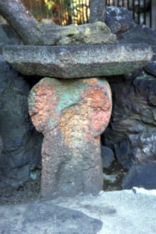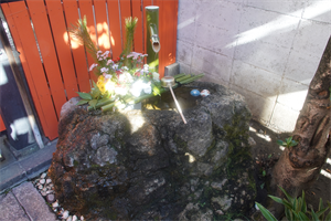 ◆班女塚 末社・班女塚(はんじょつか)は、境内の北西すぐ近くにあり、境内飛地になっている。この付近一帯に、かつて寝殿造の屋敷があったとみられている。班女塚の岩の下には井戸があったともいう。