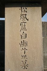![]() 松風窟白幽子之墓 ![]() 松風窟白幽子之墓 ![]() 松風窟白幽子之墓、「白川山居穏士」と刻まれている。 ![]() 藤貞幹の墓 ![]() 藤貞幹の墓、「無佛斎」と刻まれている。 ![]() 「南無阿弥陀佛」名号石碑 ![]() ![]() 地蔵尊 ![]() 墓地の東に大文字山が見える。 |