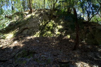 ![]() 近くの岩場、「瓜生山もみじの中になく鹿の声はふかくも聞えけるかも」、古歌があるという。 |