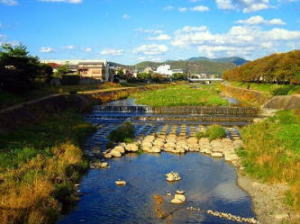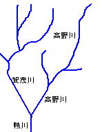 鴨川の支流一つである高野川は、淀川水系の一級河川で、若狭街道(朽木街道、鯖街道)に沿い、大原、八瀬、上高野、山端を流れ、下鴨の糺の森で鴨川に合流している。 ◆歴史年表 平安時代、上高野、松ヶ崎でも禊が行われていた。 799年、「禊於埴川」の埴川(はにかわ)とは、高野川といわれている。(『日本後記』巻8) 江戸時代、1686年、「高野川と号す」と記されている。(『雍州府志』) 近代、 1919年、3月30日、高野川改修工事竣工する。(「京都日出新聞」) 1935年、昭和10年鴨川大洪水で、高野川沿いでも被害が出た。 現代、戦後も、反物の友禅流しも行なわれていた。 ◆源流・支流 高野川は、流路延長23km、流路面積46.6㎢ある。 源流は、京都市左京区と滋賀県大津市の境にある途中峠の南西にある。さらに、焼杉山の北・古知谷阿弥陀寺の北を流れる谷川、天ヶ岳北東から流れる高谷川、三千院の東・小野山を源にする呂川、焼杉山の南を源とし、寂光院の脇を流れる草生川、さらに宮川、大長瀬川などいくつかの支流の流れを集め、南西方向に流れ下る。さらに、上高野の花園橋下流で岩倉川と合流し、松ヶ崎橋の上流で音羽川と合流し、出町柳の賀茂大橋上流で鴨川と合流する。 主な支流としては、高谷川、 呂川、(律川)、草生川、大長瀬川、宮川、岩倉川、音羽川、分流に 泉川がある。 ◆高野の由来、歴史 高野川の高野は、平安京遷都の際の、「御狩野」の「鷹野」に由来する。また、近くにいまも氷室山(上高野)の名があり、この山にはかつて氷室があったともいう。小野官瓦窯跡もあり、高野は平安京との関わりが深い。 高野川は、大原の里では「大原川」、八瀬では「八瀬川」、また「埴川(はにかわ」(『日本後紀』、840)とも呼ばれた。埴川の「埴」とは、粘土(赤土、はに)を産したことによる。焼き物の材料になり、衣料の土染めにも使われた。 高野川は、水深が浅く、流れは清涼で、平安時代には上高野、松ヶ崎でも禊が行われていた。かつては禁河とされ、アユは天皇に供されていた。 なお、高野川河畔に建立されている崇道(すどう、崇導)神社に祀られている高野新笠(桓武天皇の母)は、百済武寧王の系譜をひき、後に高野朝臣になったことから高野姓の由来になった。 江戸時代の『雍州府志』(1684)には、「叡山の麓を過ぎて、高野村に出ず。依りて、高野川と号す」とある。高野村が高野川の名前の由来だという。 かつて高野川沿いでも友禅業が盛んで、戦後も、反物の友禅流しも行なわれていた。 近代、「昭和10年鴨川大洪水」(1935)では、高野川沿いでも被害が出ている。その後の改修工事において、急曲部の緩和、護岸工事、幅員拡大などが行われている。 ◆水争い 江戸時代、高野川、音羽谷川、大田川から、周囲の村々に水が引かれていた。高野川沿いの大原から八瀬にかけては、40カ所の井堰があった。 そのなかで、太田井堰は、周辺の高野、修学院、一乗寺、田中の村と、下流の松ヶ崎、下鴨の6村の水田の灌漑に利用された。そのため、上流の組合井堰をめぐって、下流の村との間で、分水量、分水方法をめぐる長期の争いが絶えなかった。 旱魃の際に農民は、田畑が「亡所」となることを恐れた。このため、京都町奉行所への訴訟も度々で、時には太田井堰、松ヶ崎井出ヶ鼻井堰の破壊も行われた。また、井堰の維持管理のための普請も、農家にとっては負担が大きな作業だった。300年にもわたる水争いは、明治期になって終焉している。 ◆名石 名石として知られ、庭石として重宝された「加茂の七石」の一として、高野川で産した「八瀬真黒石」がある。 ◆文学 歌人・与謝野晶子(1878-1942)に「高野川 河原のかなた 松が枝に かはせみ下りぬ 知る人の家」(歌集『舞姫』、1890年)がある。 ◆自然 近年、5月下旬-6月中旬に、河合橋の泉川流入口付近、さらに上流部でも、わずかながらゲンジボタルの飛翔が確認されている。 国の特別天然記念物、オオサンショウウオが棲むともいう。 ◆アニメ アニメーション『けいおん!(第1期)』『 けいおん!!(第2期)』(原作・かきふらい 、制作・京都アニメーション、第1期2009年4-6月、第2期2010年4月-9月、第1期全14話、第2期全27話)の舞台になった。高野橋東詰、高野川河川敷などが登場する。 *年号は原則として西暦を、近代以前の月日は旧暦を使用しています。 *参考文献・資料 『京都大事典』、『高野川』、『京都の歴史10 年表・事典』、ウェブサイト「アニメ旅」 ![]() ![]() ![]() ![]() ![]() ![]() ![]() ![]() ![]() ![]() |