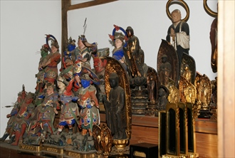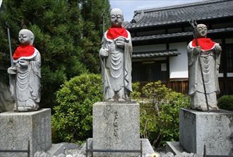 嵯峨薬師寺(さが-やくし-じ)は、清凉寺境内北西にある。清凉寺の境内塔頭になる。「療病院」とも称された。山号は竜蟠山(りゅうばん-ざん)という。 かつて嵯峨六道町に福生寺という寺があり、小野篁(802-852)が冥界から娑婆に戻る際には、寺の井戸を使っていたとされる。六道珍皇寺(東山区)の六道の辻を「死の六道」と称し、この地は「生(しょう)の六道」と呼ばれていた。 浄土宗知恩院派、本尊は心経秘鍵薬師如来像。 水子供養、安産祈願の信仰を集め、腹帯が授与される。 ◆歴史年表 平安時代初期、819年/818年、疫病の流行を憂慮した第52代・嵯峨天皇は、弘法大師(空海)に薬師如来像を刻ませ、開眼供養を行った。天皇自らも般若心経を写経し、病魔退散を祈念した。以後、薬師寺は、嵯峨天皇の勅願寺として大覚寺(嵯峨御所)の保護を受けた。当初は真言宗だった。 2代・高岳親王(真如親王、799-865?)の時、焼失している。 鎌倉時代、北条時頼(1227-1263) の帰依により復興し、顕意を住職に迎えた。 江戸時代初期、寛永年間(1624-1645)、焼失している。 その後、大覚寺宮尊性親王(1602-1651)により再建され、本堂として残る。 近代以前、大覚寺の下にあり、嵯峨御所御寺務所が置かれていた。 近代、1868年頃、大覚寺を離れ、浄土宗知恩院派に属した。 1880年、福正寺は薬師寺に合併され、地蔵菩薩像、仏像が当寺に遷されている。 ◆真如 法親王 平安時代前期の皇族・僧侶・真如 法親王(しんにょ-ほうしんのう、799-865)。男性。高岳親王(たかおか-しんのう)。父・第51代・平城天皇の第3皇子。809年、第52代・嵯峨天皇即位により皇太子になる。だが、810年、薬子の変で皇太子を廃された。822年、出家し、奈良の宗叡・修円、弘法大師の十大弟子の一人になり、高野山に親王院を開いた。862年、明州に渡り、865年、天竺を目指し、その後消息を絶った。羅越国(シンガホール)で亡くなったともいう。61歳。 ◆嵯峨 天皇 奈良時代-平安時代前期の第52代・嵯峨 天皇(さが-てんのう、786-842)。男性。諱は神野(賀美能)。父・第50代・桓武天皇、母・皇后藤原乙牟漏の第2皇子。同母兄に第51代・平城天皇、異母弟に第53代・淳和天皇。皇后は橘嘉智子(檀林皇后)。806年、兄・平城天皇の皇太弟、809年、即位した。810年、平城太上天皇の変(薬子の変)で平城上皇と対立し、これを抑え上皇が出家して決着する。蔵人頭を任じ、戦勝を祈願し賀茂斎王を置く。上皇御所として冷泉院と朱雀院を設けた。漢詩文を好み、唐風文化を取り入れた。書は空海、橘逸勢と共に三筆の一人とされた。華道嵯峨御流の開祖。没後2日後に承和の変が起きた。 天皇と弘法大師(空海)の出会いは、809年のことで、空海は前年に唐より帰国していた。天皇は、文人、書家としての見解を尋ねたという。嵯峨の地名は、唐の文化に憧れていた天皇が、唐の都・長安北方の景勝地、嵯峨山になぞらえたことに因む。57歳。 天皇は、自らの陵墓について、草木が生えるままにと遺し、遺骸は人知れない山中に葬られた。近代、嵯峨天皇山上陵が、大覚寺の北西、朝原山山頂に造営されている。 ◆小野 篁 平安時代前期の公卿・文人・小野 篁(おの-の-たかむら、802-853)。男性。野狂、野相公(やしょうこう)、野宰相(やさいしょう)。父・岑守(みねもり)。小野妹子の子孫、孫は小野道風。若い頃、弓馬に熱中し学問を顧みず、第52代・嵯峨天皇を嘆かせた。以後、学問に専心した。822年、文章生、その後、巡察弾正、弾正少忠、大内記、蔵人、式部少丞、大宰少弐などを歴任した。833年、東宮学士になる。『令義解(りょうのぎげ)』の序を書く。834年、遣唐副使に任命される。838年、3度目の出発に際し、大使・藤原常嗣が篁の船を求めて対立した。篁は病気と偽り乗船を拒否し『西海謡』を作り風刺する。嵯峨上皇により隠岐に配流された。840年、召還され、陸奥守などを経て、847年、参議になる。51歳。 従三位、左大弁。漢詩、歌に優れ、『経国集』以下に詩文、『古今和歌集』以下に和歌が残る。百人一首に「わたの原八十島かけて漕ぎ出でぬと人には告げよあまのつりね」がある。 伝承として、篁は昼は朝廷に仕え、毎夜、冥土へ入り、閻魔庁第二冥官として大王のもとで死者に対する裁判に立会っていたという。藤原高藤、藤原良相らを蘇生させたともいう。これらの篁の冥官説は平安時代より、また室町時代に始まったともいう。江戸時代には六道珍皇寺より篁が冥土に行き来したとする話が定着した。(『江談抄』『今昔物語』『元亨釈書』)。後人作に『篁物語』がある。 紫式部の墓(北区)の隣に墓がある。 ◆顕意 鎌倉時代中期-後期の僧・顕意(けんい、1239-1304)。男性。俗姓は伊集院、字は道教。薩摩(鹿児島県)の生まれ。浄土宗の聖達(しょうたつ)、西山派深草流の祖・立信(りゅうしん)に師事、嵯峨・竹林寺で教えた。深草・真宗院に移る。著『観無量寿経四帖疏楷定記』など。66歳。 ◆尊性 法親王 安土・桃山時代-江戸時代前期の皇族・尊性 法親王(そんしょう-ほうしんのう、