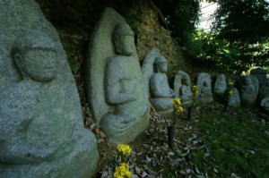 ![]() ![]() ![]() 本堂 ![]() 地蔵堂 ![]() ![]() 鐘楼 ![]() ![]() ![]() 石仏 ![]() 中央の三体 ![]() 石仏群の傍の湧水 |