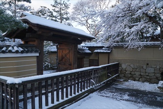 大徳寺境内南西に、塔頭・竜光院(りょうこう-いん、龍光院)がある。 臨済宗大徳寺派、本尊は釈迦牟尼仏。 ◆歴史年表 創建の詳細、変遷は不明。 江戸時代、1606年、黒田長政が、父・如水(にょすい、孝高)の墓を塔頭・玉林院南に建てたことに始まるという。菩提寺の創建は、三回忌を期したものだった。院名は、如水の院号「龍光院殿如水圓清大居士」に由る。勧請開祖は春屋宗園(しゅんおく-そうえん)、開祖は江月宗玩(こうげつ-そうがん)による。造営奉行は、黒田内膳正利長、黒田三衛門一也らが務めた。旧地は涅槃堂だった。 1608年、春屋宗園の隠居所になる。 1612年、小堀遠州は自らの菩提所として、竜光院内に孤篷庵(こほうあん)を建立した。大徳寺156世・江月宗玩を開祖とする。 1625年、旧1月、朝鮮通信使写字官・李誠国(梅庵)は、竜光院で江月宗玩と面会した。 1628年以降、現在の茶室「密庵」(席名は不明)が建てられたという。 1636年、竜光院の堂宇が落成し、春屋が住した。 1639年、春屋没後、江月宗玩が継ぎ住した。春屋は亡く江月を開祖にした、春屋を追請開山にしたともいう。 有栖川宮初代・好仁親王(1603-1638)が江月に帰依し、以後、有栖川家の菩提寺になる。 1641年、江月は商人・茶人の松屋久重を茶会に招いた。(『松屋会記』) 1643年、江月宗玩が亡くなる。孤篷庵は大徳寺境内西の現在地に移転する。方1間の方丈が建てられたともいう。 1649年、創建時の二階書院をもとに、新たな昭堂が建てられた。現在の書院も建てられたとみられる。 近代、1868年、神仏分離令後の廃仏毀釈により、境内はそれまでの50間四方から3分の1に縮小になる。 1872年、客殿、庫裏、玄関、廊下、鐘楼などが破却されている。 ◆春屋 宗園 室町時代後期-江戸時代前期の臨済宗の僧・春屋 宗園(しゅんおく-そうえん、1529-1611)。男性。俗姓は園部、道号は春屋、法諱は宗園、別号は一黙子、諡号は朗源天真禅師、大宝円鑑国師。山城(京都府)の生まれ。大徳寺・102世・笑嶺宗訢(しょうれい-そうきん)に参じ、その法を嗣ぐ。1569年、大徳寺111世になる。和泉・薬泉寺、近江・瑞岳寺を開く。著『円鑑国師一黙稿』。83歳。 第107代・後陽成天皇の勅問に幾度か答え、国師号を特賜される。茶人・千利休、津田宗及、今井宗久、古田織部らと親交があった。利休の孫・宗旦を弟子にした。 ◆江月 宗玩 安土・桃山時代-江戸時代前期の臨済宗の僧・江月 宗玩(こうげつ-そうがん、1574-1643)。男性。号は欠伸子、慒袋子、赫々子、諡号は大梁興宗禅師。 父・和泉(大阪府)堺の茶人・商人・津田宗及。小堀遠州の甥。9歳で大徳寺に入る。南宗寺の春屋宗園(しゅんおく-そうえん)に師事した。15歳で大徳寺・大仙院で剃髪し、春屋により宗玩に改めた。1606年、大徳寺・竜光院を創建した。1607年、印可を得る。1610年、大徳寺156世になる。1612年、大徳寺に再住し、大徳寺・孤篷庵を創建した。1615年、博多・崇福寺79世、その後、堺の南宗寺13世、肥前守・松浦隆信の招きで平戸・正宗寺などの住持を歴任した。大徳寺・総見院に住した。1625年、大梁興宗禅師の号を贈られる。1627年、紫衣(しえ)事件では一人赦される。1639年、竜光院2世になる。竜光院で没した。70歳。 書画、詩文、墨跡鑑定にも優れた。茶は父、小堀遠州に学ぶ。大徳寺と千家茶道を結ぶ。小堀遠州、松花堂昭乗らと親交した。 ◆黒田 如水 室町時代後期-江戸時代前期の武将・黒田 如水(くろだ-じょすい、1546-1604)。男性。前姓は小寺、幼名は万吉、初名は孝隆、祐隆、通称は官兵衛、勘解由(かげゆ)次官、道号は如水、官兵衛孝高(よしたか)、洗礼名はドン・シメオンなど。播磨国(兵庫県)の生まれ。父・播磨姫路城主・小寺(黒田)職隆、母・小寺政職の養女(明石宗和の娘)の嫡男。子は長政。1562年、小寺政職の近習になる。1567年頃、家督と家老職を継ぎ、姫路城代になった。1575年、主君・御着城城主・小寺政職を説得し織田信長に付く。この頃、黒田姓に戻る。1577年、豊臣秀吉の中国征伐で姫路城に迎え、その後属し軍師として西国経営に関与した。1578年、信長の中国攻めで荒木村重が背き、如水は単身で摂津・有岡城で説得した。捕らえられ城中に抑留される。1579年、信長の有岡城陥落により救出される。1580年、播磨揖東郡内を与えられた。1582年、備中高松城攻めで、水攻めを秀吉に献策した。山崎の戦、1583年、賤ケ岳の戦、1585年、四国攻めに加わる。秀吉本隊の出陣を前に軍奉行として九州の諸大名に対する勧降工作を行う。1587年、九州平定後、中津城豊前6郡を与えられた。1589年、剃髪し、如水と号し、子・長政に家督を譲る。1590年、小田原攻めで小田原城で北条氏政・氏直父子に無血開城の説得を行う。1592年-1593年、文禄の役、1597年-1598年、慶長の役で渡海した。1598年、秀吉没後、石田三成と対立する。1600年、関ヶ原の戦いで徳川方に付く。子・長政を関ヶ原に出陣させ、豊前で大友義統(吉統)軍との石垣原の戦いを制圧し、三成派を一掃した。晩年、太宰府天満宮内に草庵を
