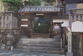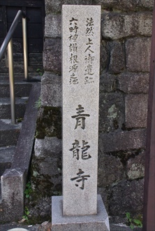 八坂道(霊山道)の坂道に建つ青龍寺(せいりゅう-じ)は、伽羅観(きゃらかん)さん、伽羅観音とも呼ばれる。山号は見性山という。 浄土宗。本尊は聖観世音菩薩像を安置する。 洛陽三十三所観音巡礼第9番札所。京の通称寺霊場元札所、伽羅観さん。 ◆歴史年表 創建の詳細不明。 平安時代、789年、第50代・桓武天皇の勅命により、聖観世音菩薩を祀るために建立された「大宝寺」(乙訓郡小塩山)に始まるともいう。当初は天台宗だった。 794年、平安遷都以後に寺院は移転したという。以後、衰微する。 長徳年間(995-999)、大宝寺が焼失したために寺院は移されたともいう。 1183年、平家の都落ちの際の兵火により焼失する。 1185年、法然の弟子・見仏(藤原親盛)が開基になる。(『京都府地誌』)。後白河法皇(第77代)に奏上し再建された。見仏は、法然の弟子・安楽、住蓮らと共に別時念仏六時礼讃の道場にする。 鎌倉時代、1192年、後白河法皇の没後、見仏は、菩提回願のために別時念仏六時礼讃の道場にする。寺号を「引導寺」に改め、浄土宗に改宗した。 江戸時代、寛永年間(1624-1645)、知恩院32世・雄誉霊巌が、引導寺の故地に再興したという。不断念仏を造仏し、古像を得て本尊にしたという。(『坊目誌』)。寺号を「青龍寺」に改める。 1864年、伊賀上野地震で表門が崩れた。(和気亀帝『日記』) 現代、2005年、「平成洛陽三十三所観音」が復興された。 ◆見仏 平安時代後期-鎌倉時代前期の武士・歌人・見仏(けんぶつ、?-?)。男性。大和入道親盛見仏房、俗名は藤原親盛(ふじわら-の-ちかもり)。父・藤原北家長良流、山和守・藤原親康。北面武士として後白河上皇(第77代)に仕える。1172年、東山歌合などに出詠した。1188年、成立の『千載集』などの勅撰和歌集に入集している。今様でも上皇の弟子だった。法然の門弟になる。1192年、上皇の没後に出家した。追善のための六時礼讃を八坂・引導寺(青龍寺の前身)で住蓮・安楽らと行ったという。1204年、「七箇条起請文」の8番目にその名がある。 ◆雄誉 霊巌 江戸時代前期の浄土宗の僧・雄誉 霊巌(1554-1641)。男性。駿河(静岡県)の生れ。父・沼津氏勝の3男。駿河・浄運寺の増誉のもとで出家した。下総・大巌寺の貞把・雲潮のもとで修学し、同寺3世を継ぐ。奈良・霊巌院、山田・霊巌寺などを建立した。1624年、江戸深川・霊巌寺を開き、1629年、知恩院32世になる。知恩院焼失後、3代将軍・徳川家光の庇護により再興した。後水尾上皇に進講した。寛永年間(1624-1645)、青龍寺を再興した。 ◆近藤 正慎 幕末の尊攘運動家・近藤 正慎(1816-1858)。男性。義重。丹波(京都府・兵庫県)の生まれ。清水寺成就院で出家する。同院住持月照の影響をうけ活動をともにする。1858年、西郷隆盛らの倒幕の挙兵計画後、月照も薩摩へ逃れた。その際に、後のことを正慎に託した。正慎は安政の大獄により捕えられ、江戸送りになる。1858年、獄中で月照らの居所を尋問され拷問を受けた。口を割らず、獄舎の壁に頭を打ちつけ、舌を噛みきって自害した。 残された妻子のために、清水寺境内での茶屋営業が許可され、屋号「舌切茶屋」としていまも店は開いている。 墓は青龍寺(東山区)にある。 ◆仏像・木像 ◈本尊の「聖観世音菩薩像」(1m)は、唐朝第12代皇帝・徳宗(779-805)より、第50代・桓武天皇(737-806)に贈られた香木伽羅(きゃら、沈香、沈水香木)に刻まれたという。伽羅の観音菩薩であることから伽羅観(きゃらかん)と呼ばれる。伝教大師(最澄、767-822)作ともいう。 香木伽羅には伝承がある。唐で天変地異が起こり、伽羅が海中より引き上げられた。直ぐに御殿に納められる。その夜、徳宗皇帝の夢枕に観音が現われ、信仰篤い唐と東の国の人々の救済のために身を分かち、香木として現われたという。伽羅を日本に送ることを夢告したという。 徳宗は宸翰により由来を記し、霊木伽羅を日本に送った。奈良時代、789年に、桓武天皇は、観音菩薩像を彫刻し長岡京近郊(乙訓郡小塩山、西京区大原野)に大宝寺を創建して祀ったという。その後、平安時代前期、794年の平安遷都に伴い現在地に遷された。また、平安時代中期、長徳年間(995-999)に、大宝寺が焼失したため遷されたともいう。 江戸時代には、七観音院の開帳に合わせ、伽羅観音も度々開帳されていた。 ◈「大和入道親盛見仏房坐像」(35.5㎝)1体は、江戸時代前期、寛永年間(1624-1645)後の作とみられる。老僧見仏の小ぶりの肖像彫刻であり、袈裟を着て胸前で合掌した坐像になる。首が前方に落ち込み、頭部が前傾している。彫りは浅く衣文表現も単純・形式化している。 木造、寄木造、彩色、玉眼。 ◆別時念仏六時礼讃 別時念仏は、一定の日時を定め、威儀を正して念仏する行をいう。六時礼讃は、中国の僧・善導の「往生礼讃偈」に基づき、1日を6つに分ける。 1.日没(にちもつ、 申-酉の刻)、2.初夜(しょや、 戌-亥の刻)、3.中夜(ちゅうや、半夜、 子-丑の刻)、4.後夜(ごや、 寅-卯の刻)、5.晨朝(じんじょう/しんちょう、辰-巳の刻)、6.日中(にっちゅう