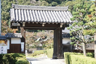正法寺(しょうぼう-じ)は、石清水八幡宮の南、東高野街道沿いに建つ。山号は徳迎山(とつこう-ざん)という。 浄土宗。本尊は阿弥陀如来三尊。 ◆歴史年表 鎌倉時代、1191年/1192年、志水氏の祖・高田忠国が、源頼朝の幣礼使としてこの地に居住する。「新清水」と称し、以後、志水氏の菩提所になったという。1世は、忠国の次男・願阿円誓であり、当初は天台宗だった。(「正法寺文書」) 1263年、円誓は、掟法を定めた。その直後に亡くなる。(「正法寺文書」) 1326年、3世・宗久は、「石清水」の「清」を避け、「清水」を「志水」に改めて伽藍を整備した。以来、志水氏の菩提寺になる。 室町時代後期、1486年頃、聖誉は10世となり、浄土宗に改めた。(「正法寺文書」) 1503年、伝誉は11世に就く。(「正法寺文書」) 1521年頃、塔頭・正寿院、光徳院などが開かれる。(「正法寺文書」) 1546年、伝誉は、第105代・後奈良天皇の帰依を受ける。勅願寺になる。 1547年、後奈良天皇より「八幡自筆尊像」「徳迎山」「正法寺」の勅額を贈られる。(「正法寺文書」) 安土・桃山時代、1589年、豊臣秀吉は、正法寺、塔頭領として八幡、清水などに寺領500石を寄進した。この頃、7つの塔頭があった。(朱印状) 1600年、徳川家康は、八幡、下奈良村に寺領500石を寄付した。(朱印状、「正法寺文書」) 江戸時代、1607年、徳川義直が尾張に封じられ、尾張藩の庇護を受ける。 1621年、鐘楼が建てられた。 1630年、1629年とも、忠継の時、徳川家康の側室・志水亀女(相応院)の寄進により、本堂、唐門を建立し、方丈を修理して再建される。志水氏、相応院の菩提寺になる。近世を通じて尾張藩の篤い庇護を受ける。領内寺院中で最も栄えた。(「正法寺文書」) 1637年、相応院は、徳川義直筆の徳川家康像を寄進する。(「正法寺文書」) 1642年、相応院が没し、その菩提寺になる。遺言により金子100両が寄進される。(「正法寺文書」) 1664年、本堂屋根、方丈などを修理した。(「正法寺文書」) 1665年、正法寺が記されている。(『扶桑京華志』) 1685年、正法寺が記された。(『京羽二重』) 1702年、正法寺が記されている。(『山州名跡志』) 1707年、19世・顕誉の時、書院が建てられた。(棟札) 1780年、境内が描かれている。(『都名所図会』) 1840年、塔頭・光徳院の客殿を移し小方丈とした。 1864年、亀山藩・松平信行の山城国中取締役就任により、正法寺・塔頭が宿所にあてられた。(「正法寺文書」) 近代、1868年、神仏分離令後の廃仏毀釈により、石清水八幡宮の八角堂が境外堂宇として八幡大芝に移築される。以後、正法寺の境外仏堂として管理され、仏像、木像も遷され御堂内に安置される。 現代、1945年、宝物館の法雲殿が完成する。 1961年、大方丈屋根が第二室戸台風により破損する。 1983年、本堂、大方丈、小方丈、書院、唐門、鐘楼が京都府有形文化財に指定された。 1984年、本堂、大方丈、唐門が重要文化財に指定される。 1987年、書院の解体修理が行われる。 1988年、本堂の半解体修理が始まる。中門の解体修理が行われた。 1989年、庭園が京都府指定名勝に指定された。 1991年、鐘楼が解体修理、本堂の半解体修理が終わる。 1992年、「正法寺文書」が京都府有形文化財に指定される。 2008年、法雲殿が再建され、阿弥陀如来坐像が遷された。 ◆高田忠国 平安時代後期-鎌倉時代の武将・高田忠国(?-?)。詳細不明。男性。鎌倉幕府初代将軍・源頼朝の御家人として仕える。石清水八幡宮の社家志水氏の祖。正法寺を建立する。 ◆円誓 鎌倉時代の僧・願阿円誓(?-1263)。詳細不明。男性。父・高田忠国の次男。1191年(1192年とも)、正法寺1世。兄・国元とともに正法寺の基礎を築く。1263年、正法寺掟法を定めた。その直後に亡くなる。 ◆伝誉 室町時代の僧・伝誉(1476-1559)。詳細不明。男性。1503年、正法寺の11世。1521年、知恩寺の住持になる。1546年、第105代・後奈良天皇の帰依を受け、正法寺が勅願寺になる。83歳。 ◆志水亀女 安土・桃山時代-江戸時代前期の志水亀女(1573-1642)。女性。相応院。父・石清水八幡宮社務田中家の分家、正法寺・志水宗清。竹腰正時(定右衛門)に嫁ぎ、1591年、正信を産む。夫没後、1594年、徳川家康の側室になる。1595年、仙千代を出産するが6歳で早逝した。1612年、五郎太(義直、尾張藩初代藩主、尾張徳川家始祖)を産む。正信は、尾張藩の家老職に就いた。 家康の死後、亀女は相応院と称し、名古屋城に住した。墓は菩提寺・相応寺(名古屋市)にある。 69歳。 ◆仏像 ◈本尊の「阿弥陀如来坐像」(96.2㎝)は、鎌倉時代前期、12世紀(1101-1200)末作とみられている。来迎印を結び、結跏趺坐する。光背台座(後補)に、江戸時代前期、寛永年間(1624-1645)の修理銘が入る。木造、寄木造、彫眼、漆箔、白毫、肉髻珠。 両脇の観音菩薩は両手で蓮台を持ち跪坐する。木造、寄木造、彫眼、漆箔。勢至菩薩は合掌し跪坐する。木造、寄木造、彫眼、漆箔。阿弥陀三尊像になる。 ◈「阿弥陀如来立像」(111㎝)は、平安時代、10世紀(901-1000)作という。小さくなだらかな肉