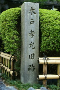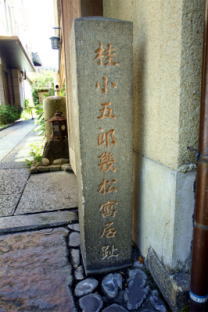 ![]() 【参照】「桂小五郎幾松寓居跡」の石標、中京区木屋町通通御池上ル東側上樵木町(料亭幾松) |