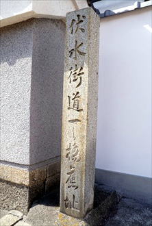 ![]() ![]() ![]() 「子どもそだて 常盤薬師」の石標 ![]() ![]() ![]() 松の木 ![]() 「伏水街道一之橋(一ノ橋)旧址」の石標 |