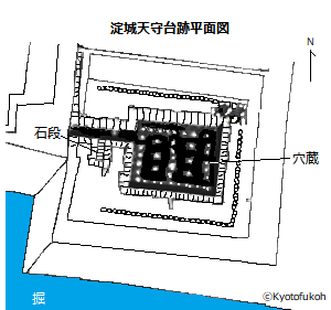 淀(よど)は、与杼、与渡、澱などとも書かれた。宇治川、桂川、木津川の三川合流地点であり、かつて東には巨椋池も広がっていた。標高11mの低湿地帯のため、水が淀み淀と名付けられたという。交通・軍事上の要衝地であり、室町時代には納所に淀古城が築城された。江戸時代、現在地に現存する新淀城が築城される。京都防衛の意味があった。 新淀城の旧跡地は、現在、淀城跡公園(1.7ha)になっており、本丸、天守台、二の丸、石垣、内堀などの遺構がある。 ◆歴史年表 江戸時代、1623年、旧8月、伏見城廃城(1619)にともない、2代将軍・徳川秀忠は、松平定綱に淀藩へ所領3万5千石で入部を命じた。定綱が初代城主となる。河村右衛門の屋敷跡に、幕府の援助により淀城が築城された。資材は、廃城になった伏見城のものも流用したとう。以後、山城警固の拠点となる。 1624年、二条城天守も移築された。徳川家光は大坂城に移る途中、淀城で永井尚政が供奉する。 1625年、徳川秀忠により再度竣工された。城郭がほぼ完成する。なお、3万5000石で淀藩立藩(藩主・松平定勝)になる。 1626年、旧6月、前2代将軍・徳川秀忠、旧8月、3代将軍・徳川家光が相次いで城の縄張り調べに入城する。また、上洛の際の宿所として使われたという。 1633年、旧3月、下総古河藩より10万石で入封した永井尚政が城主になる。南部が増築された。 1662年、旧5月、近江・若狹地震で、淀城が大破、家中の屋敷・城下の町家も多数破損した。(『元延実録』) 1669年、城主・石川憲之が入る。 1711年、城主・戸田光煕が入る。 1717年、9代城主・松平乗邑が6万石で入部する。 1723年、稲葉正知の入封により10万石で10代城主となる。以後、幕末まで12代に渡り稲葉氏の居城になる。山城国唯一の大名家居城として機能する。 1748年、朝鮮通信使が淀城に入った。 1756年、落雷により天守、ほか大半の建物を焼失する。幕府により1万両の貸し付けがある。天守、本丸は再建されることはなかった。 1830年、旧7月、京都大地震(文政の大地震)で櫓が倒壊した。城下で地割れ多く、家・蔵が倒壊、堤防に亀裂が入る。(『宝暦現来集』) 1868年、旧1月、鳥羽・伏見の戦いで、21代城主、幕府老中の稲葉正邦は江戸にあった。留守居役は城門を閉ざし、体制の立て直しを図った旧幕軍を入城させなかった。旧幕府軍は男山方面に敗走する。この時の兵火により、城内の一部と城下町を焼亡した。 近代、1871年、廃藩置県後、城の建物はすべて撤去され、石垣、内堀のみが残された。城地は旧藩主稲葉家所有となる。7月、淀県庁が置かれる。 1885年、本丸に藩祖・稲葉正成を祀る稲葉神社が建立される。 1910年、京阪電気鉄道の天満橋と五条間の軌道敷設が完了した。工事に伴い、本丸北西部の遺構が破壊される。 1917年、9月29日-30日、大正大洪水で伏見三栖からの洪水流は京阪電鉄の線路沿いに淀に入り、淀町の浸水3.9mになり、淀城前の停留所流失した。住民らは舟で淀城天守台に避難する。 1933年、京阪国道の開通により二の丸、西の丸の一部が道路用地となる。 現代、1954年、城地は稲葉家より淀町に寄付される。その後、外堀も埋められる。 1968年、淀城跡公園が開園した。 1987年、石垣の解体修理、伏見城研究会による天守台の発掘調査が行われ、礎石、石蔵(穴蔵)が発見された。 2021年-2022年、京都競馬場淀寮の増築工事に伴う発掘調査で、淀城本丸東側の家老屋敷遺構が判明した。 ◆松平 定綱 安土・桃山時代-江戸時代前期の大名・松平 定綱(まつだいら-さだつな、1592-1652)。男性。父・松平定勝の3男。正室は浅野長政の娘。1602年、家康に拝謁、2代将軍・徳川秀忠に仕えるよう命じられる。その後、下総国山川藩、越中守に就く。大坂の陣にも加わる。常陸国、下妻藩、遠江国掛川藩、山城国淀藩、美濃国大垣藩藩主、伊勢国桑名藩初代藩主などを歴任した。60歳。 ◆永井 尚政 安土・桃山時代-江戸時代前期の武将・永井 尚政(ながい-なおまさ、1587-1668)。男性。通称は伝八郎、号は信斎。父・永井直勝、母・阿部正勝の娘。2代将軍・徳川秀忠の近習になり、大坂の陣での戦功により小姓組番頭になる。1619年、加増1万石を得て大名になる。1622年、老職(老中)に就任した。1623年、秀忠から徳川家光への将軍譲位に伴い、秀忠付き西の丸老職になる。1626年、父の遺領を継ぎ、下総古河藩藩主、1631年、山城淀藩主になる。1648年、興聖寺を再興した。82歳。 秀忠近侍の三臣(ほかに井上正就、板倉重宗)のひとり。墓は興聖寺(宇治市)にある。 ◆石川 憲之 江戸時代中期の大名・石川 憲之(いしかわ-のりゆき、1634-1707)。男性。初名は昌勝、号は泰恵、泰窗。父・石川廉勝(かどかつ)の長男。祖父・忠総(ただふさ)の跡を継ぎ、1650年、近江膳所(ぜぜ)藩主・石川家2代になる。1651年、伊勢亀山藩主に転じ、1669年、山城淀藩主・石川家初代になった。1695年、将軍・徳川綱吉に『論語』を講じた。74歳。 ◆戸田 光煕 江戸時代前期-中期の大名・戸田 光煕 (とだ-みつひろ、1674-1717)。詳細不明。通称は孫