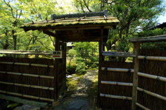 南禅寺境内に、塔頭・大寧軒(だいねい-けん)がある。近代以降、茶道家元薮内家所有になっていた。近年、100数十年ぶりに南禅寺の所有に戻った。庭に三角形の明神鳥居が据えられていることで知られている。 臨済宗南禅寺派大本山。 ◆歴史年表 創建、変遷の詳細は不明。 この地には、かつて南禅寺の塔頭・大寧院が建てられていた。 室町時代、1438年、大寧院が本地院とともに焼失する。 近代、1870年、神仏分離令(1868年)後の廃仏毀釈により寺領は上知となり、寺院合廃の政令により廃院になる。 1890年、琵琶湖疏水の第一期工事が着工になる。以後、周辺は別荘地になる。後、跡地は茶道家元藪内家に払い下げられる。 1897年頃、呉竹弥太郎の所有になる。 1906年、原弥兵衛の所有に移る。庭を改修する。 明治期(1868-1912)末、藪内家11代・透月斎竹窓紹智により作庭された。 1923年、横山別邸(「現在の大寧軒」)に三柱鳥居があると記されている。(「鳥居の研究」) 現代、2004年、再び南禅寺所有に戻る。 ◆竹窓 紹智 江戸時代後期-近代の茶人・竹窓 紹智(ちくそう-じょうち、1865-1942)。男性。名は宗梁、字は世純、輝翁、号は透月斎(とうげつさい)、竹窓。父・9代・竹露紹智(宝林斎)の長男。漢籍・書を山本亡洋に、画を森寛斎に学ぶ。岡山曹源寺・枕流軒(ちんりゅうけん)老師の高野川畔の庵に3年にわたり参禅する。弟子1人の厳しい修行で、時に火箸で打たれることもあったという。78歳。 ◆庭園 かつて、この地には、呉竹別荘と称された、南禅寺の塔頭・金地院に属する庭園があった。近代、1897年頃、呉竹弥太郎の所有になる。1904年に建てられた茶室「環翠庵」が園内にあった。1906年、原弥兵衛の所有に移り、建物の改築と、琵琶湖疏水を取り入れた庭園の大幅な改修を行っている。 庭園は、透月斉竹窓紹智(籔内家11代茶道家元)が作庭した池泉回遊式庭園(470坪、1 553.7㎡)の茶庭になる。庭面は三角形をしており、池泉がほぼ半分を占める。南東の東山三十六峰のひとつ大日山(150m)を借景とする。山には、王城鎮護の法となる岩蔵があったという。庭園には主屋、待合、茶室「環翠庵」(二畳台目)が建てられている。 庭園全体は苔で覆われ、飛石が主屋から待合、滝へと打たれている。琵琶湖疏水より引き込まれた豊富な水の流れは、南の滝口(3m)より落され、曲線を描く浅いせせらぎへと導かれる。小川中に置かれた三柱の明神鳥居(平面三角形)の間を抜け、さらに池泉を通り、北の境内外に流されている。 池泉のほか、待合の西に玉石を敷きつめた枯山水式の涸れ川もある。主屋、茶室付近にな露地庭も見られる。小川に3つの橋が架かり、沢渡り石が置かれている。大小の飛石、自然石を利用した5つの蹲踞、石製井筒、春日型燈籠、雪見型燈籠、織部型燈籠など9つの石燈籠が据えられている。自然石の石柱(2m)、宝塔なども立てられている。石柱は玄武洞(兵庫県)の柱状列石を用いている。現在は天然記念物指定になっており搬出はできない。借景の東山と庭は一体となり、松、楓、また池の傍に半夏生などの植栽もみられる。庭園は池泉式、枯山水式、露地風が複合している。 せせらぎの中に置かれた三柱の明神鳥居付近からは、いまも湧水があるという。石造の鳥居自体は小さい。京都三珍鳥居のひとつ蚕ノ社(右京区)の鳥居を模したものという。三柱鳥居は三角の庭面に符合して立てられている。また、主屋側からは、鳥居内に滝の水が落ちているように見える。 ◆茶室 茶室「環翠庵」は、二畳台目、待合がある。 ◆三柱鳥居 木島坐天照御魂神社(蚕ノ社、右京区)には、明神鳥居を三基組み合せた高さ3.4mの石製三柱(みつはしら)鳥居がある。三脚鳥居ともいう。上部から見ると正三角形をしている。京都三珍鳥居(厳島神社破風型鳥居、北野伴氏社石鳥居)の一つといわれている。 三柱鳥居について、夏至と冬至の日の出、日の入りの逍拝線上にあるとする説もある。それぞれに、延長線上の周囲の山が当てられているという。三柱鳥居について、かつて木島神社のものが日本唯一といわれていた。大寧軒の茶庭に明治期に設計された石造りの三柱鳥居があることが知られるようになった。大寧軒の三柱鳥居は、木島神社の三柱鳥居を模したとみられている。近代、1923年の『鳥居の研究』でも大寧軒の三柱鳥居は紹介されている。現代、1994年以降、東京向島の三囲(みめぐり)神社にも三柱鳥居が建てられた。 *普段は非公開。 *年号は原則として西暦を、近代以前の月日は旧暦を使用しています。 *参考文献・資料 案内資料、『旧版 古寺巡礼京都 12 南禅寺』、『岡崎・南禅寺界隈の庭の調査』、『鳥居』 、ウェブサイト「藪内家の茶」、ウェブサイト「コトバンク」 ![]() ![]() ![]() ![]() ![]() ![]() ![]() ![]() ![]() ![]() |