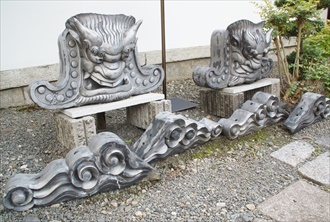 江戸時代後期、1815年、瓦師・甚左衛門作の鬼瓦「阿吽形」がある。
