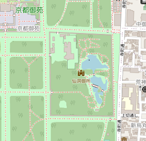 ![]() 仙洞御所・大宮御所 ![]() 現在の仙洞御所、 OpenStreetMap Japan |